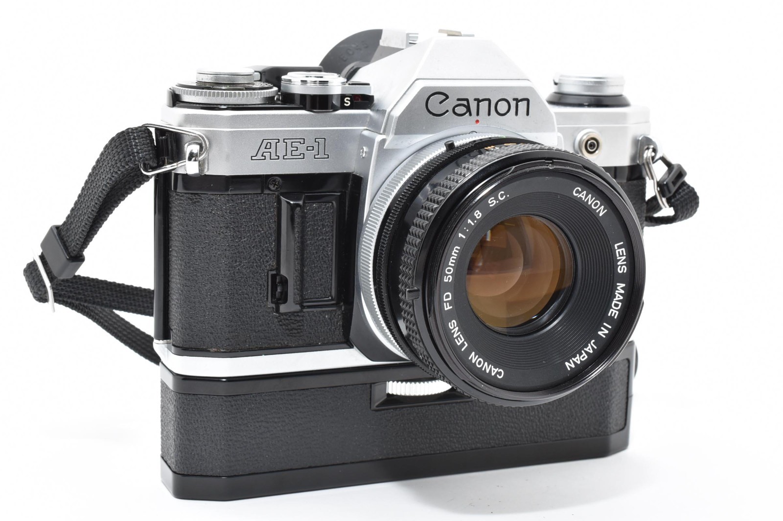 NEAR MINT w/Winder A Canon AE-1 silver 35mm SLR Film Camera FD 50mm F1.8 Japan