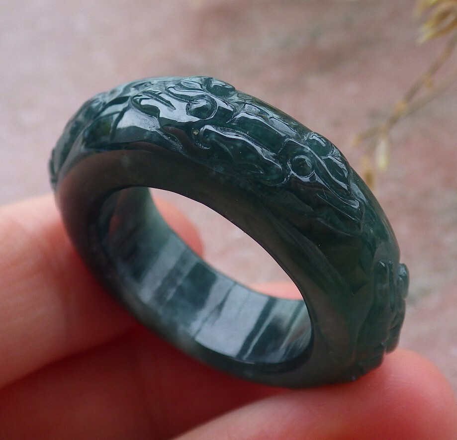 Video Certified Green Natural A JADE Jadeite Dragon RING USA. 10.25 651283 AS