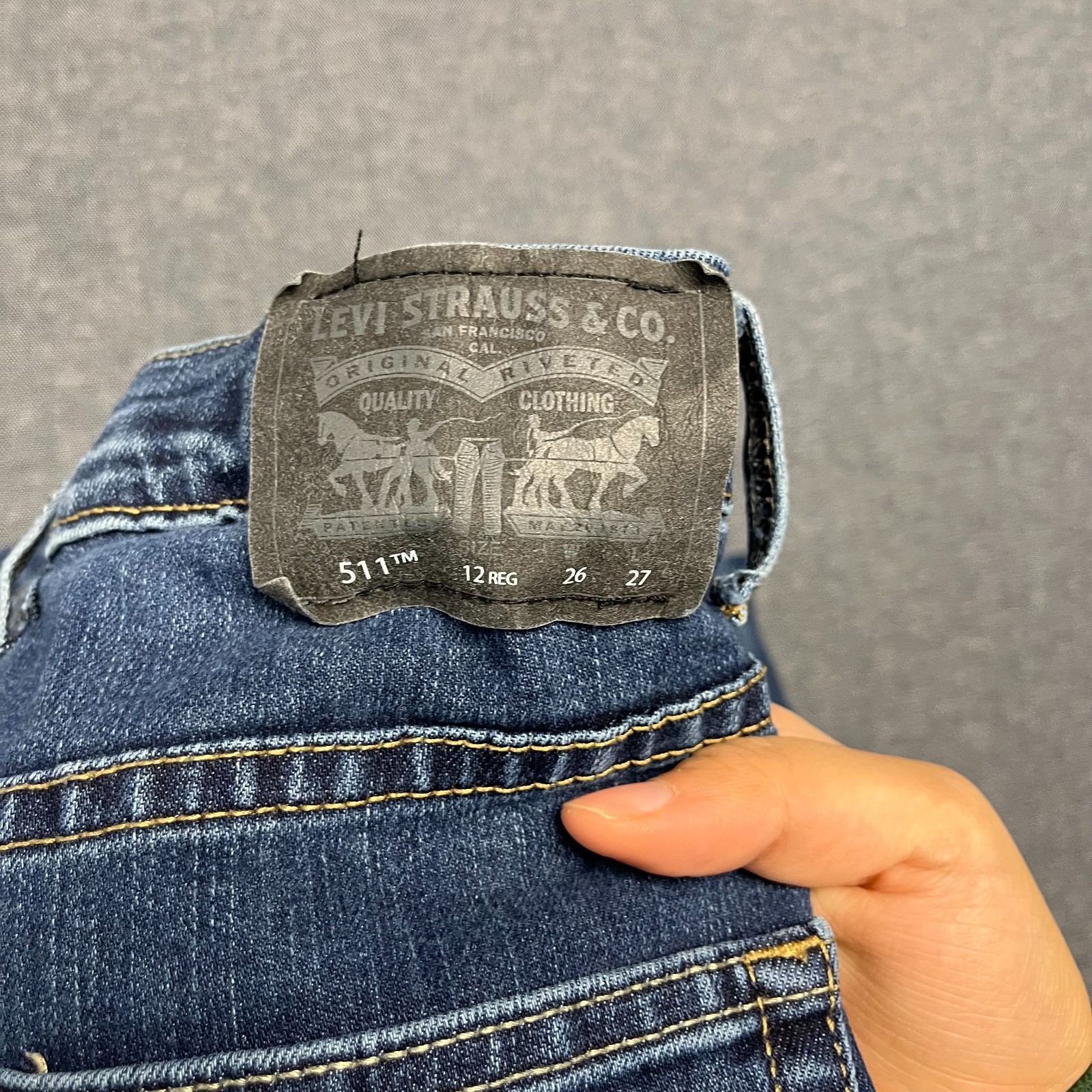 как выглядит Levis 511 Boys Jeans Size 12 Reg 26x27 Blue Slim Fit Dark Wash Denim Stretch фото