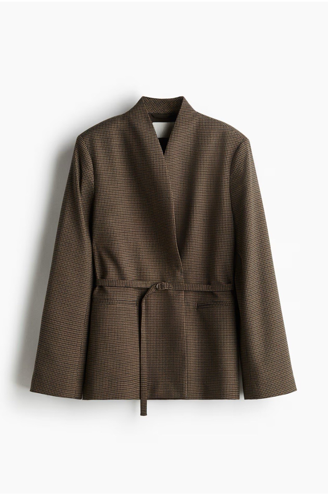 как выглядит H M Belted Jacket dark beige/houndstooth pattern фото
