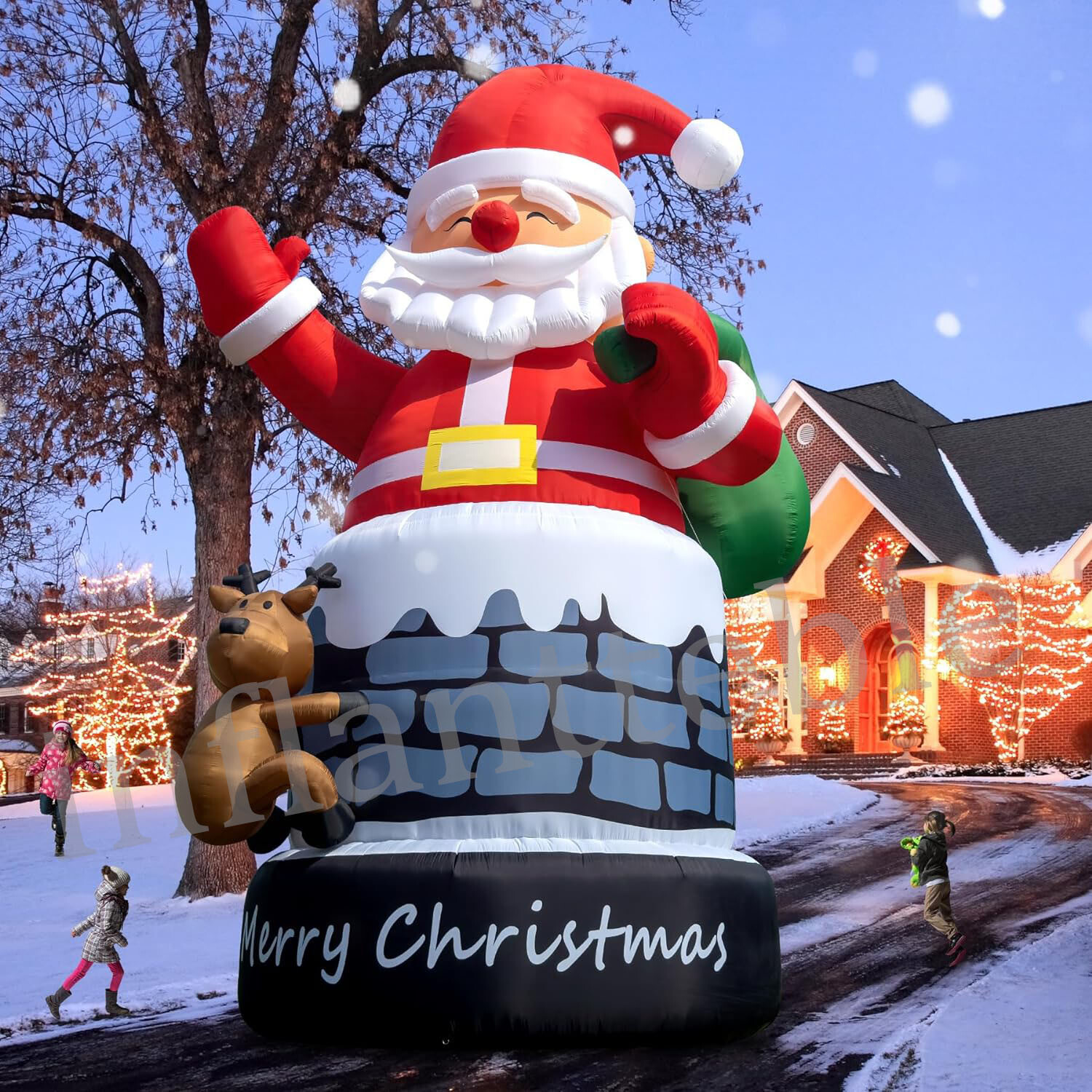 Giant 20-33 FT Christmas Inflatable Santa Claus in Chimney with Reindeer Blower