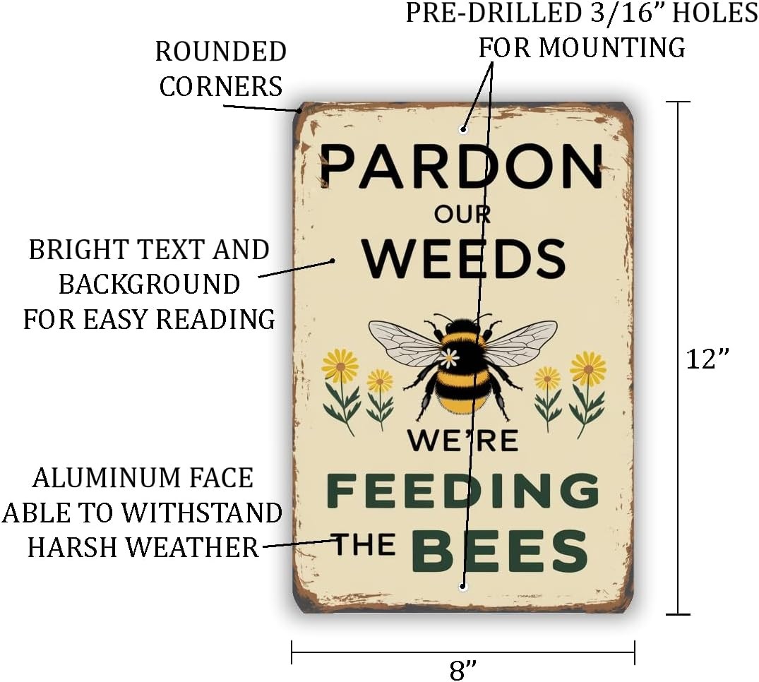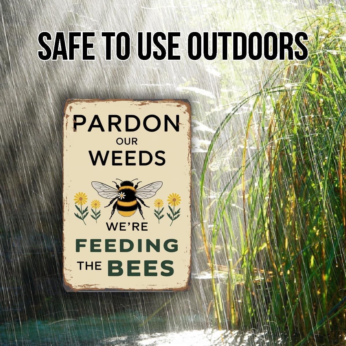 • Pardon Our Weeds We re Feeding The Bees Tin Metal Signs Home D cor 8x12