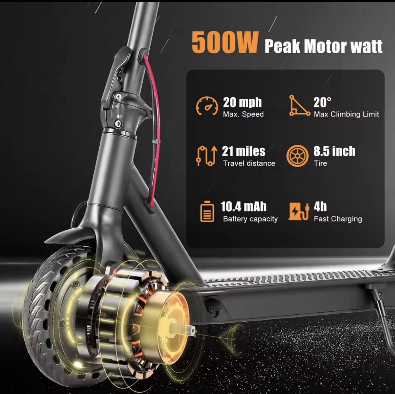 AiLife SCOOTER 500w peak motor 8.5 solid tires , 10.4 mAh front electronic brake