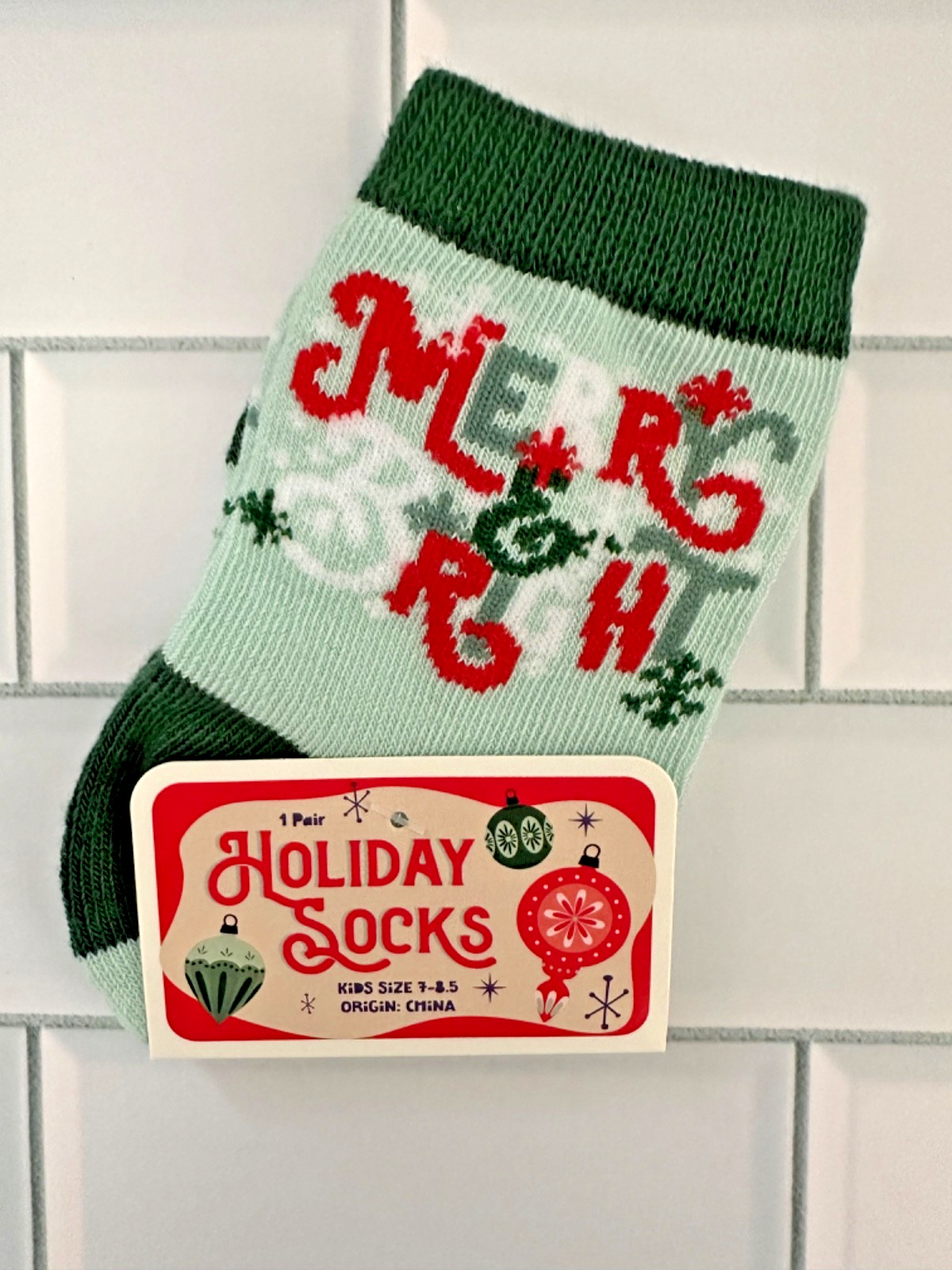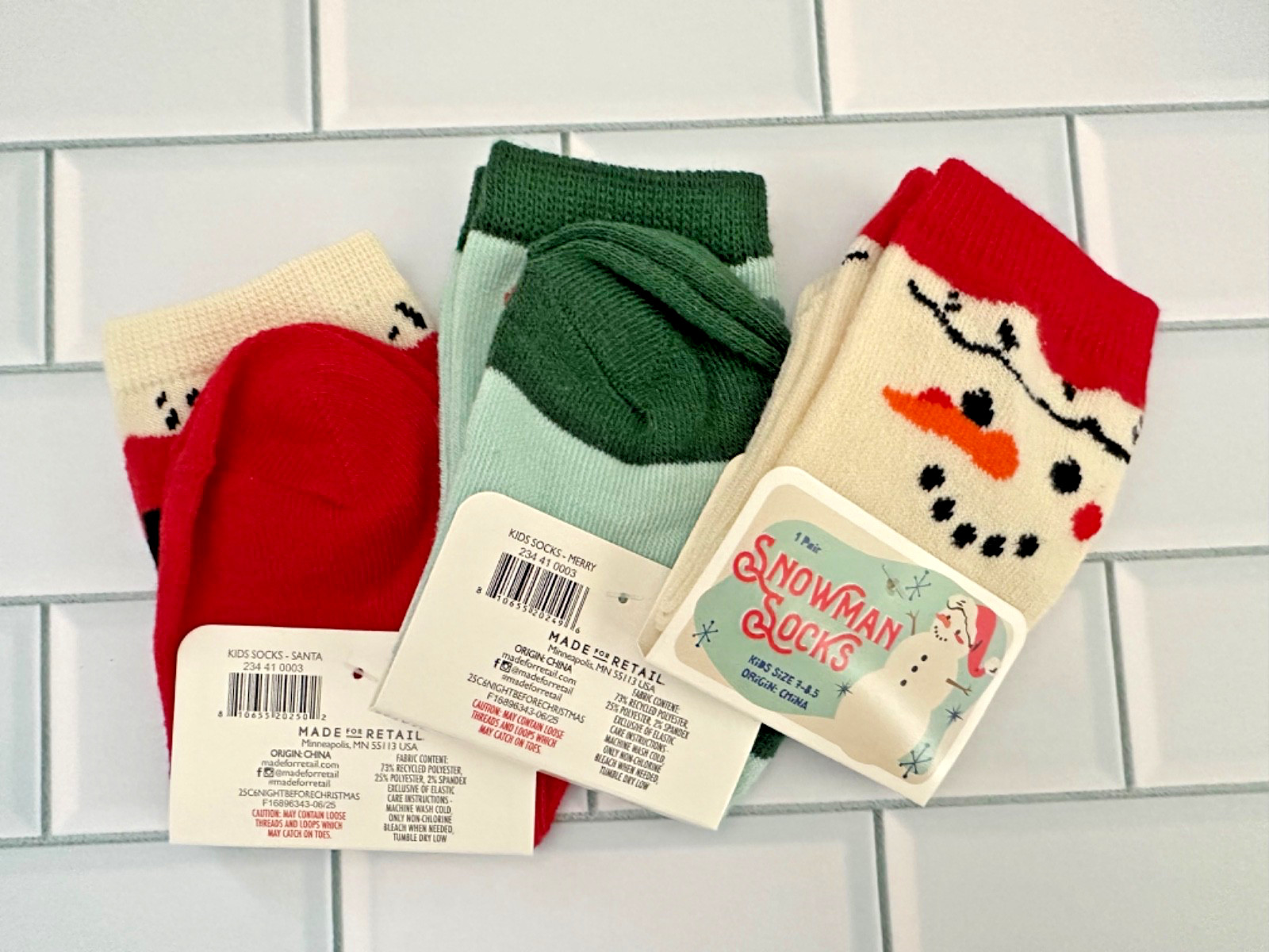 3 Pairs Holiday Kids Socks Snowman, Merry Bright, Santa Socks Sz 7-8.5