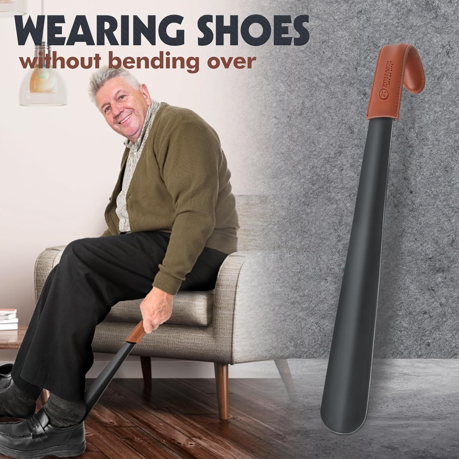 как выглядит ZOMAKE Shoe Horn Long Handle for Seniors Men Women,Metal Brown фото