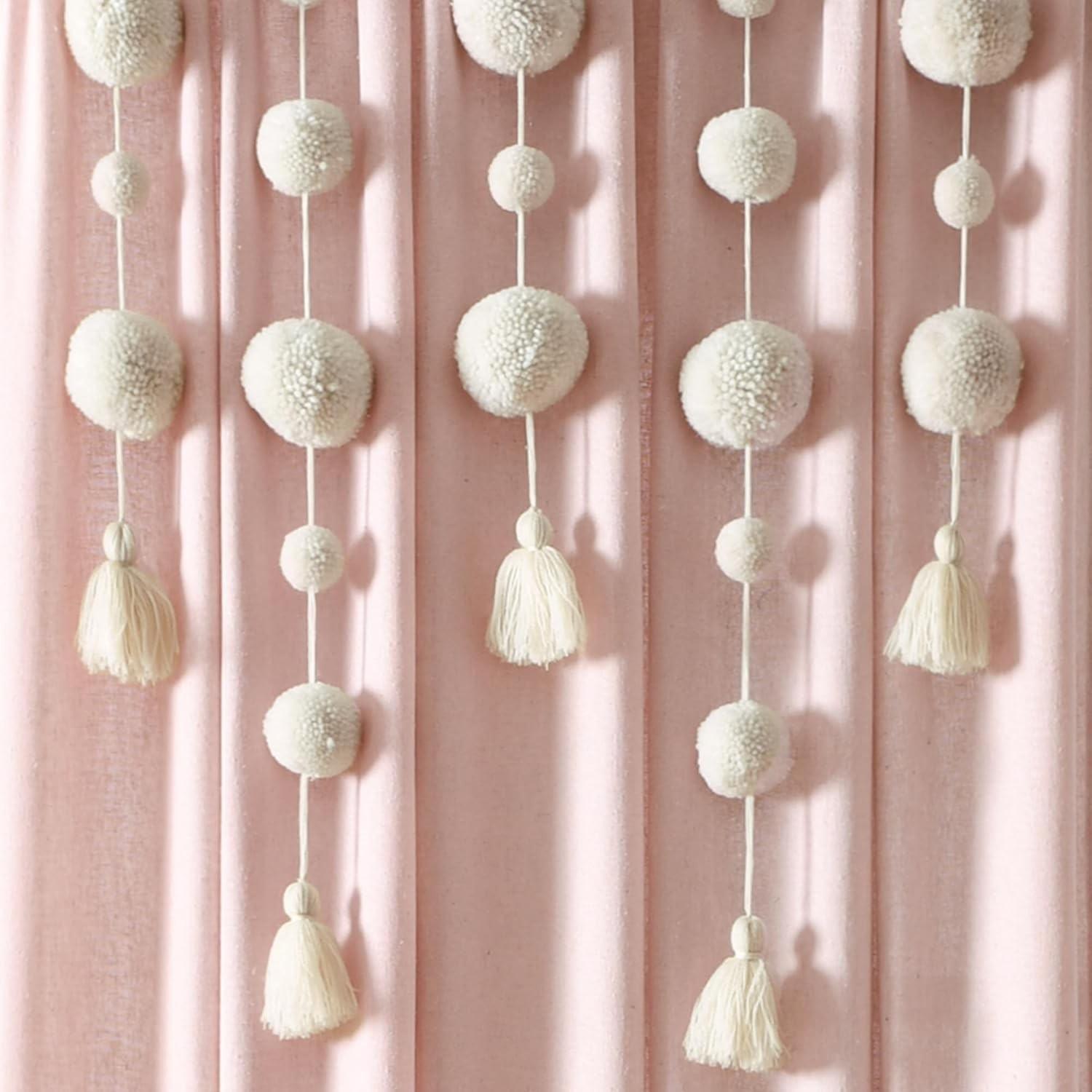 как выглядит Lush Decor Boho Pom Tassel Linen Textured 52W x 84L Pack of 1 , Blush фото