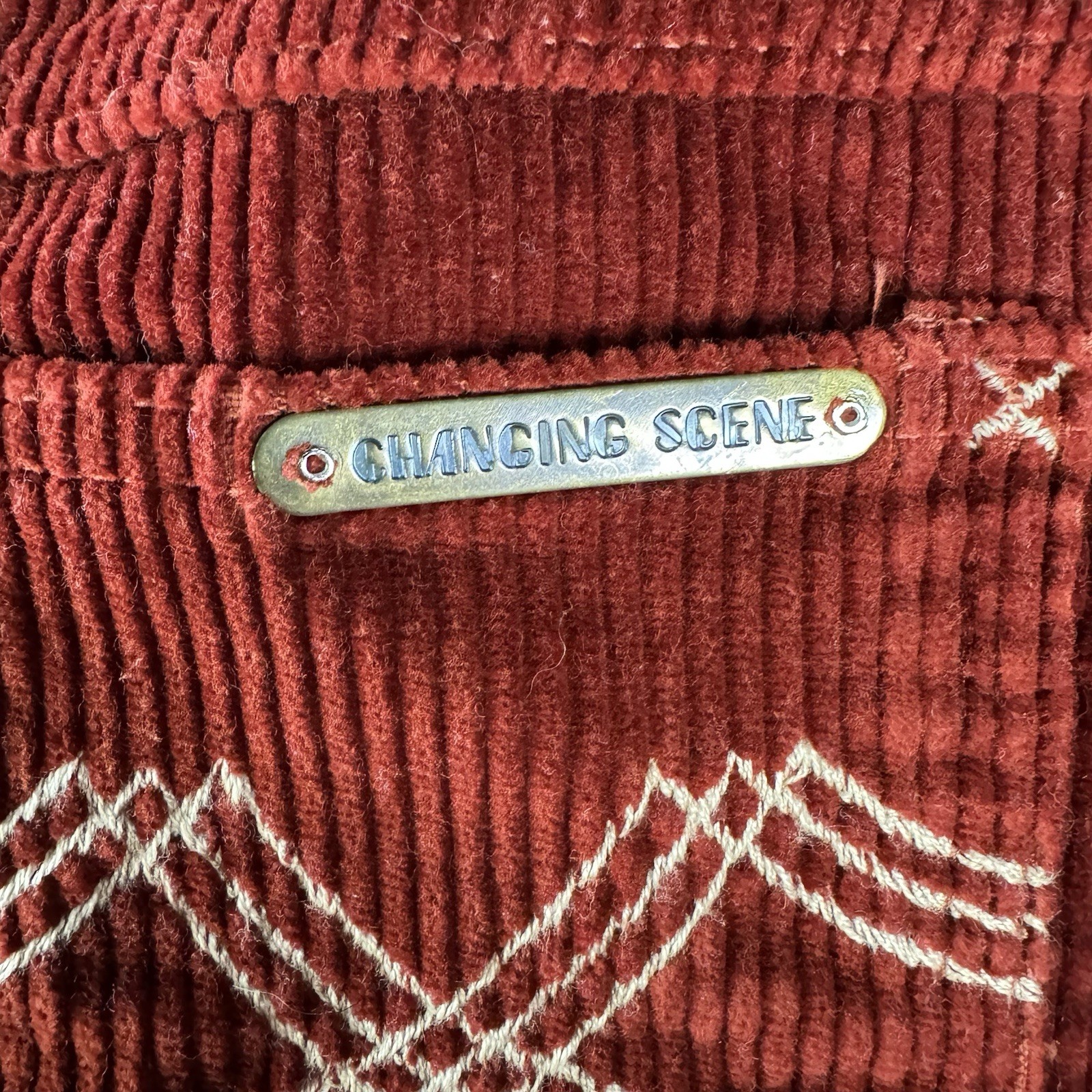 Vintage 70s Changing Scene Corduroy Flare Bell Bottom Pants 30 Waist Rust Red