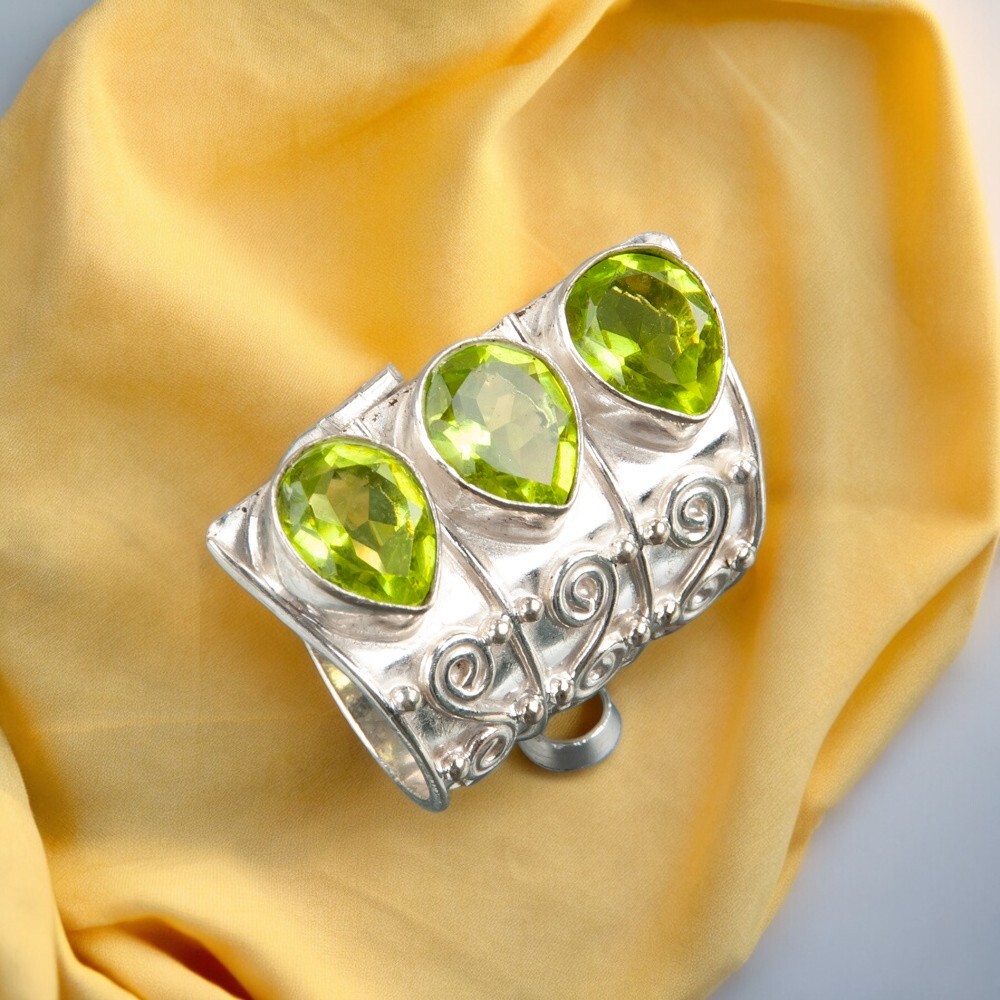 как выглядит Natural Peridot Gemstone 925 Sterling Silver Adjustable Ring Gift For Her DC фото