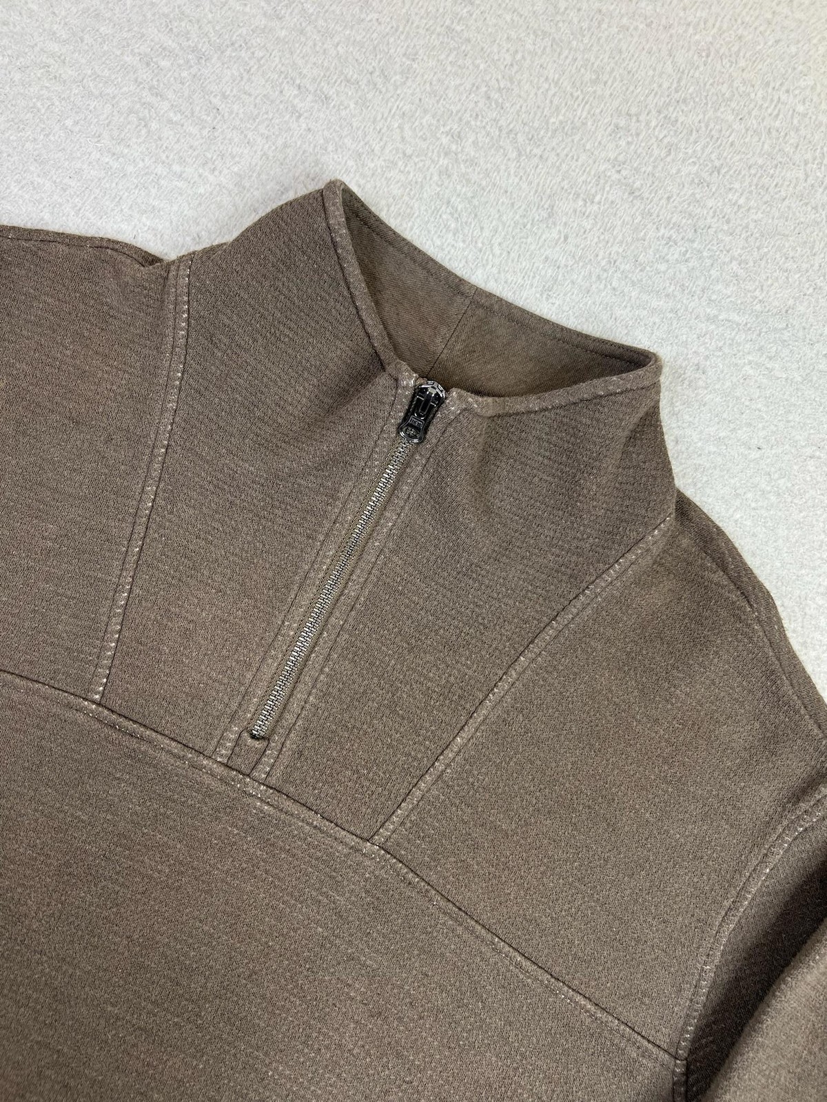 как выглядит UNTUCKit Sweater Mens 2XL Olive Green Verzaro Quarter Zip Waffle Knit Pullover фото