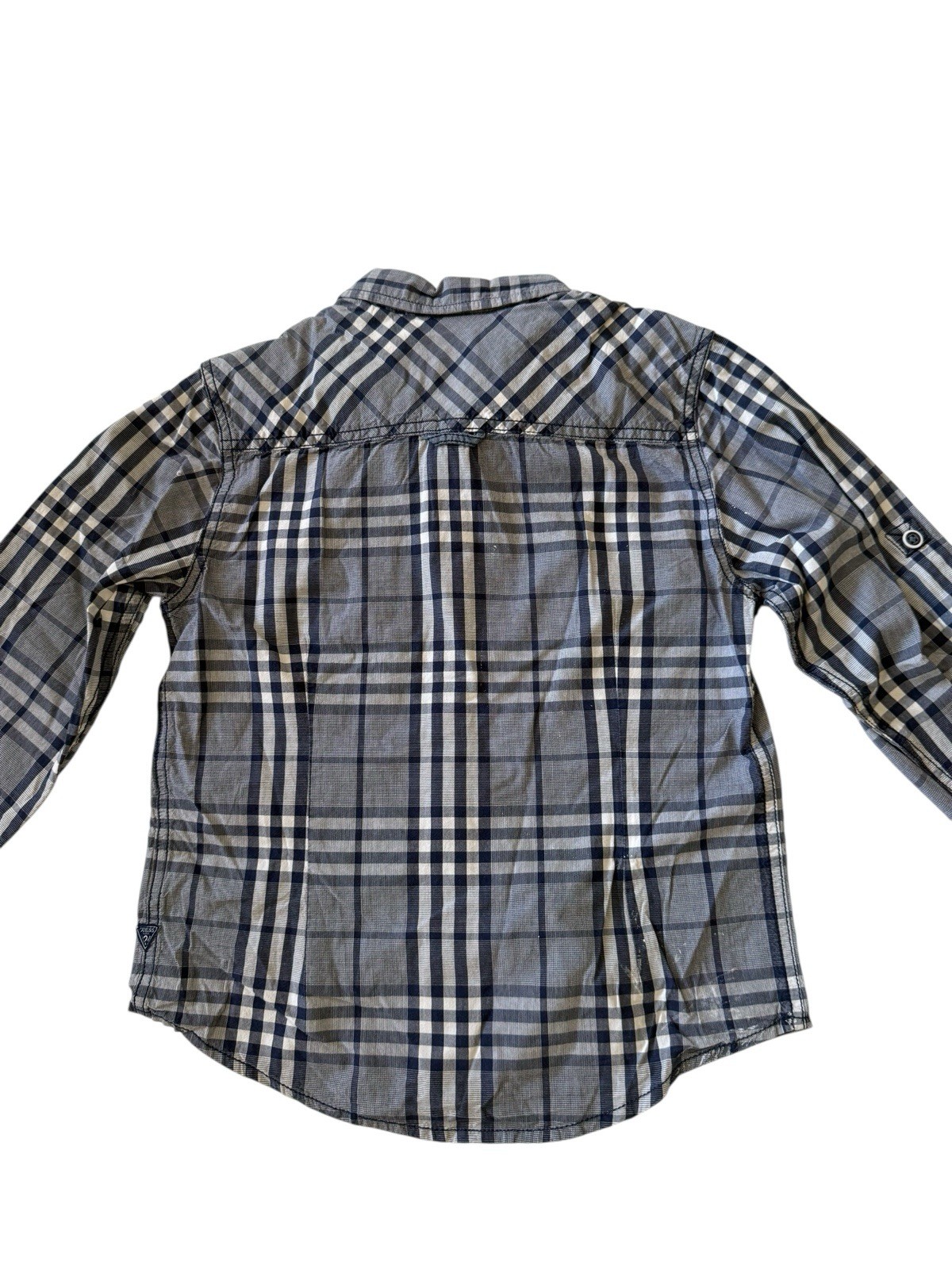 Guess Jeans 1981 Outdoor Original Plaid Collared Button Up Shirt Blue Boys 7 GUC