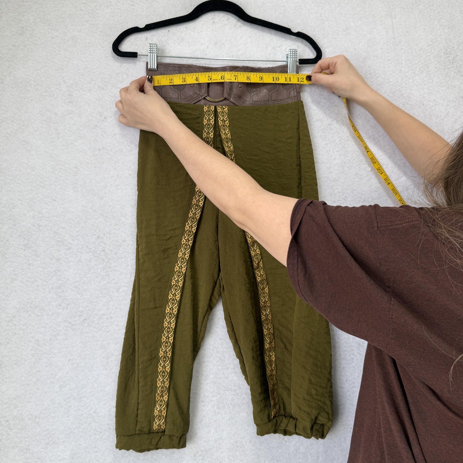 Disney Raya Costume Pants Girls 7/8 Green Brown Faux Leather Belt Elastic Cuffs
