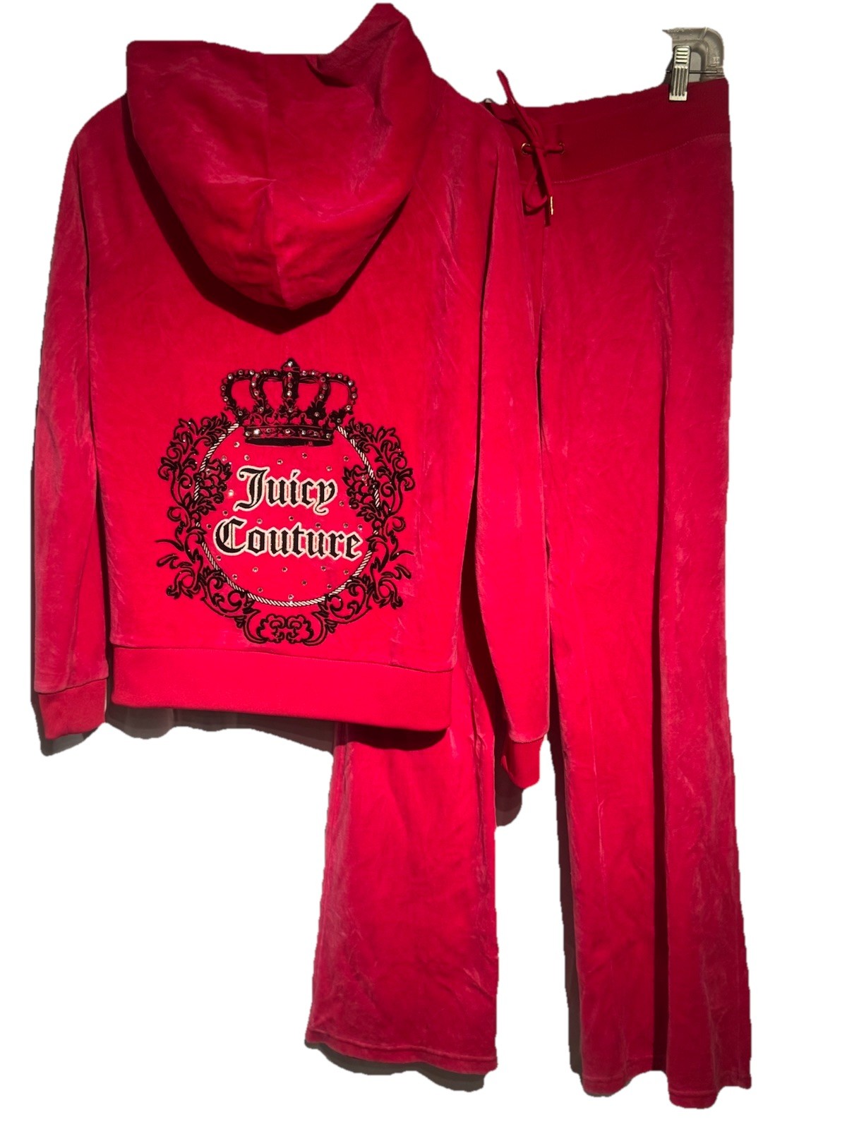 Vintage Pink 2000 s Juicy Couture Velour Crown Rhinestone Flare Tracksuit Small