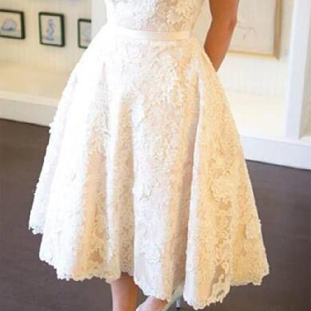 как выглядит Off the Shoulder Short Wedding Dresses Lace Appliques Knee Length Bridal Gowns фото