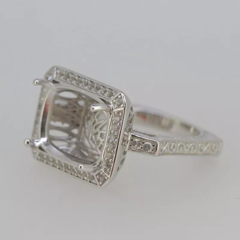 16x12MM Cushion Shape Semi Mount Ring 925 Sterling Silver Solitaire Halo Ring
