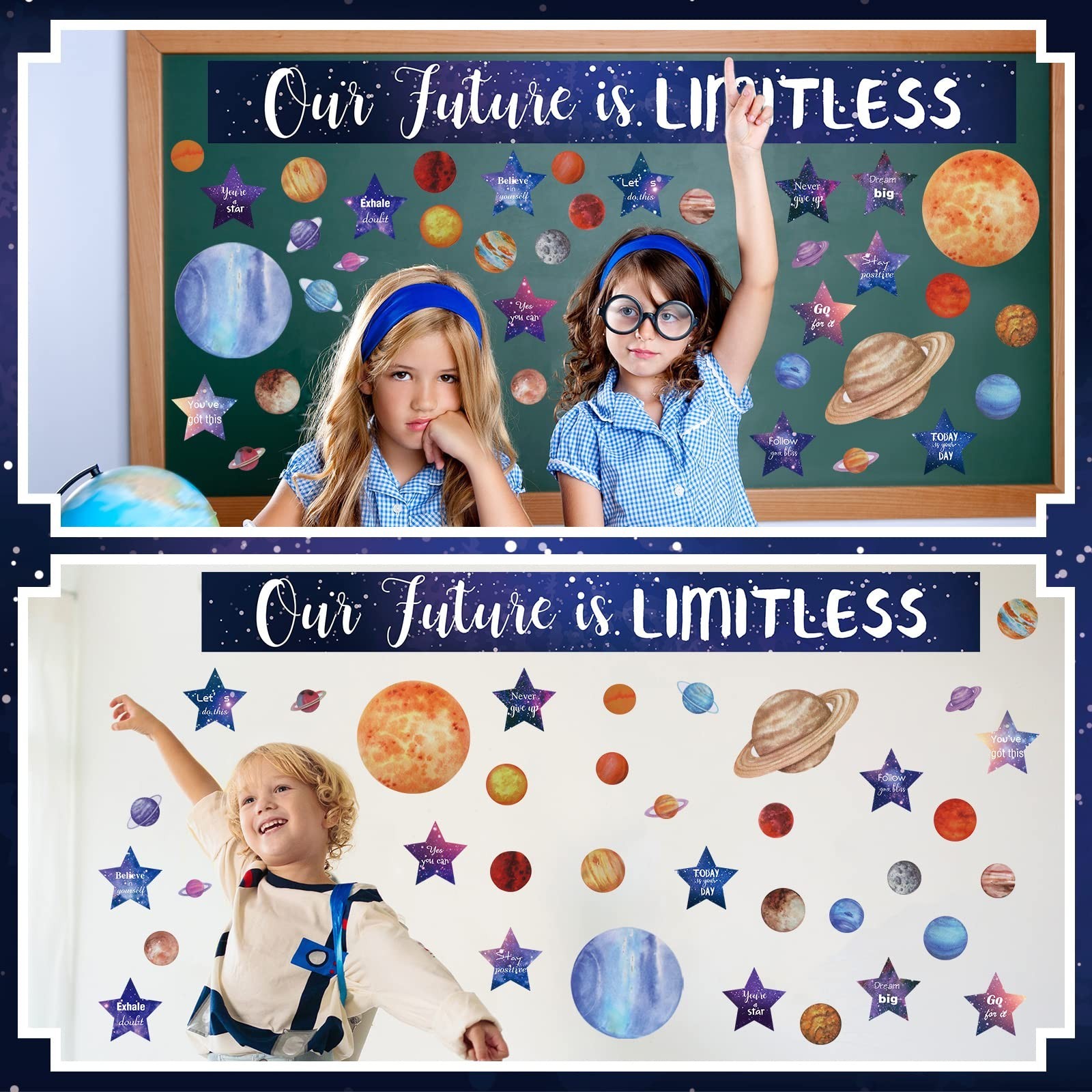 как выглядит Kosiz 97 Pcs Space Classroom Bulletin Board Decorations Solar System Galaxy C... фото