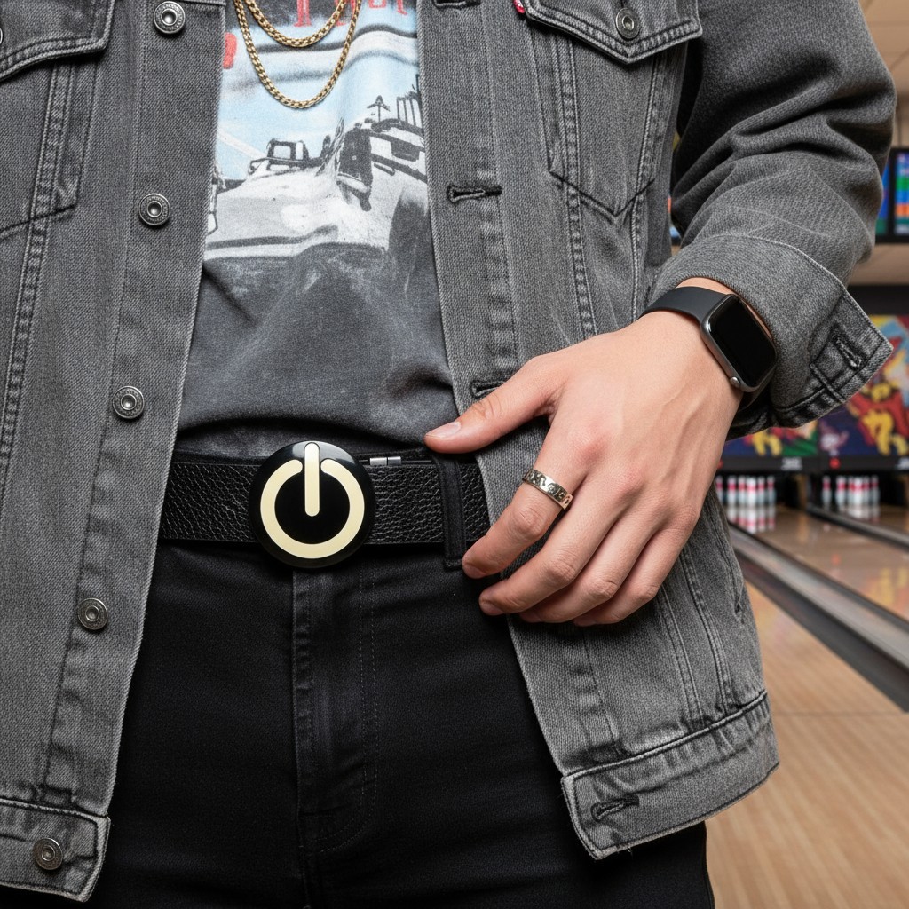 Men Women Belt Buckle Emoji Fashion Black Metal Power Button On Off 80's Retro