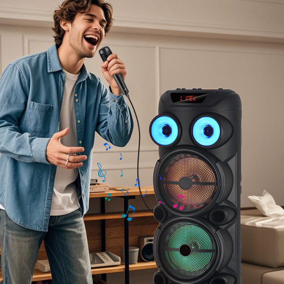 как выглядит 8000W Cylindrical Bluetooth Speaker w/ 3x8" Woofers Karaoke Mic Heavy Bass Party фото