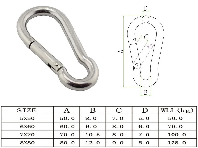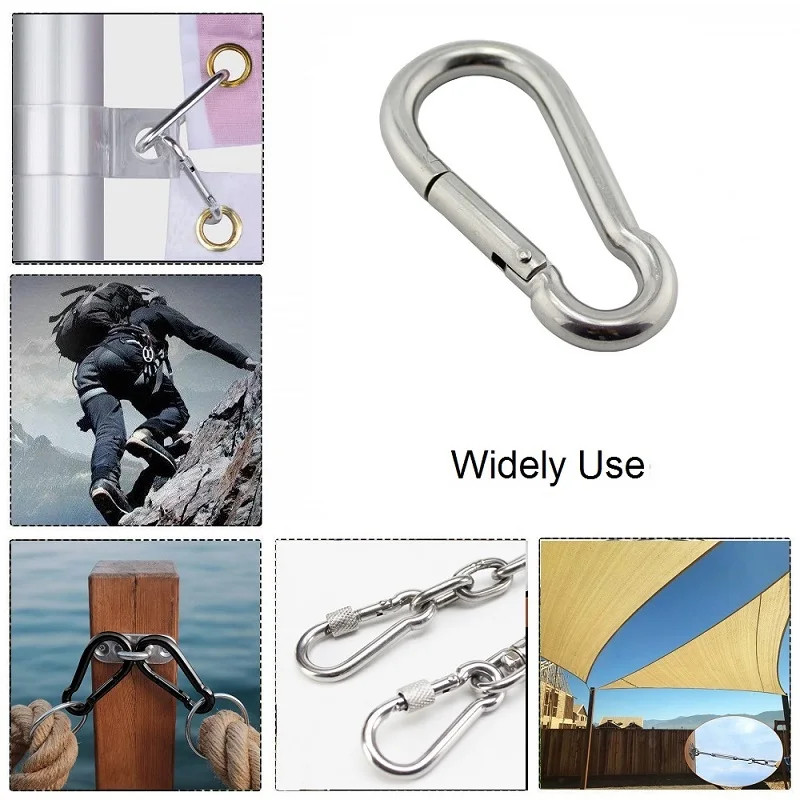5 Pieces Marine Carabiner 304 Stainless Steel Hook Clip 5mm 6mm 7mm 8mm Rigging