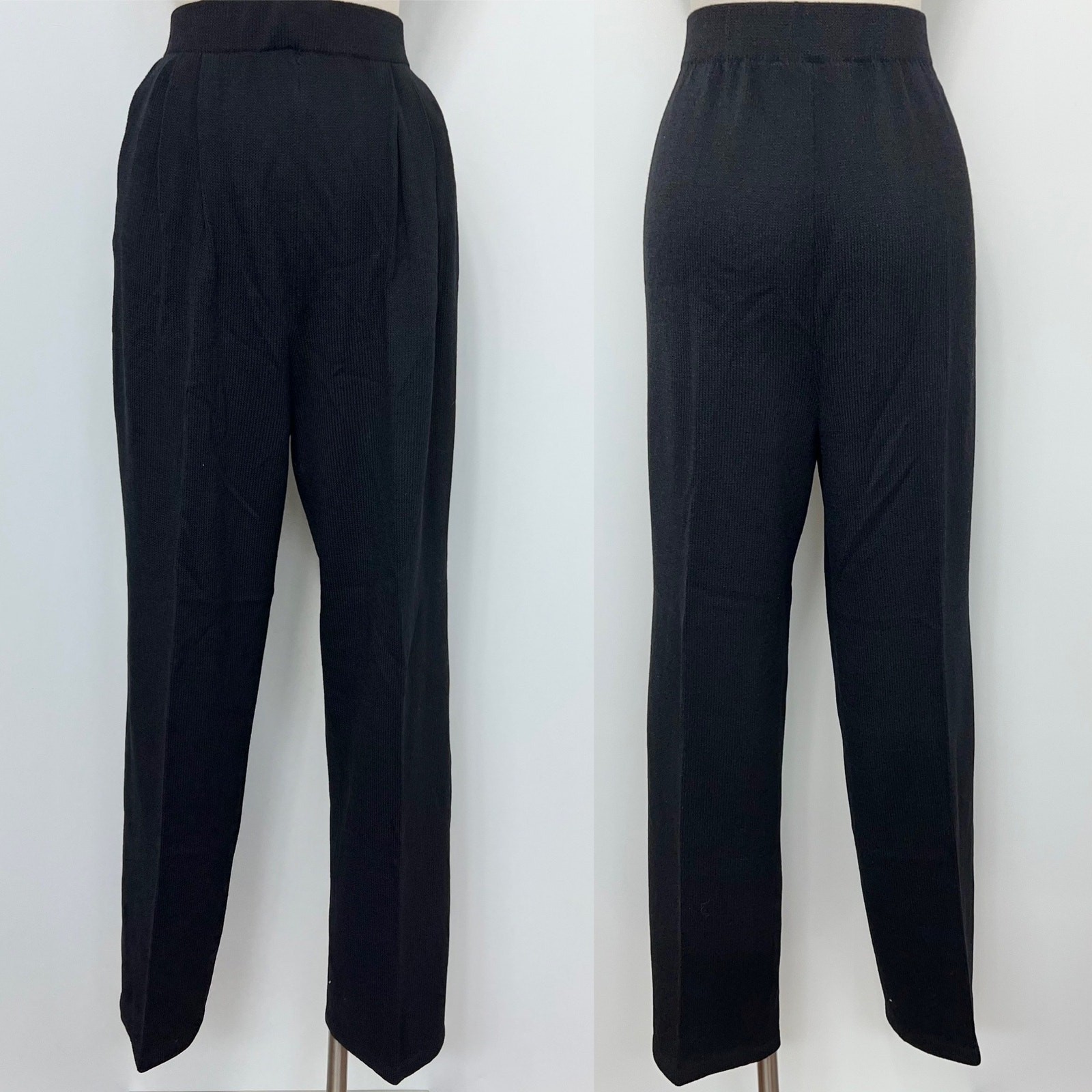 St. John Collection Santana Knit Pants Black Pleated Front Ankle 10