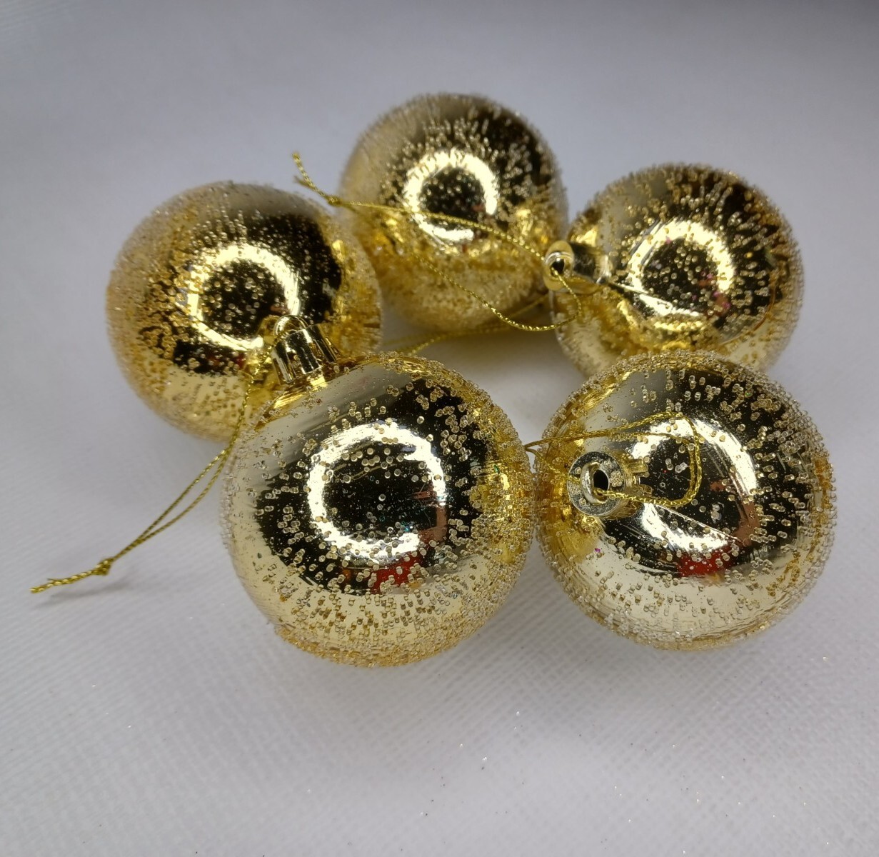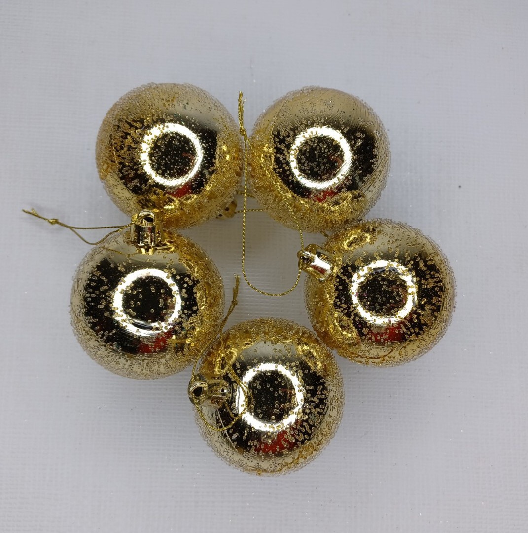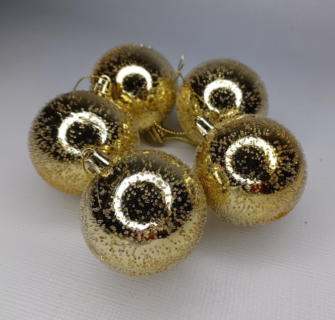 как выглядит 5 Christmas Tree Ornaments Shatterproof Plastic Gold Textured Balls фото