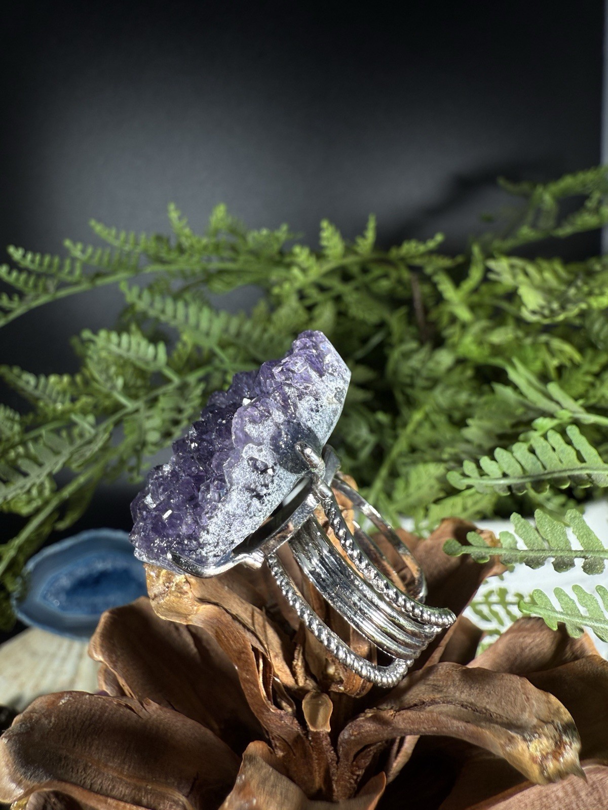 Amethyst Ring Jewelry, Unique handmade crystal ring Adjustable Ring