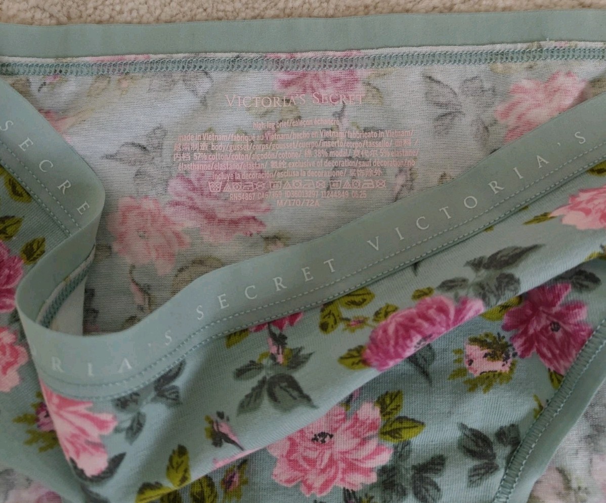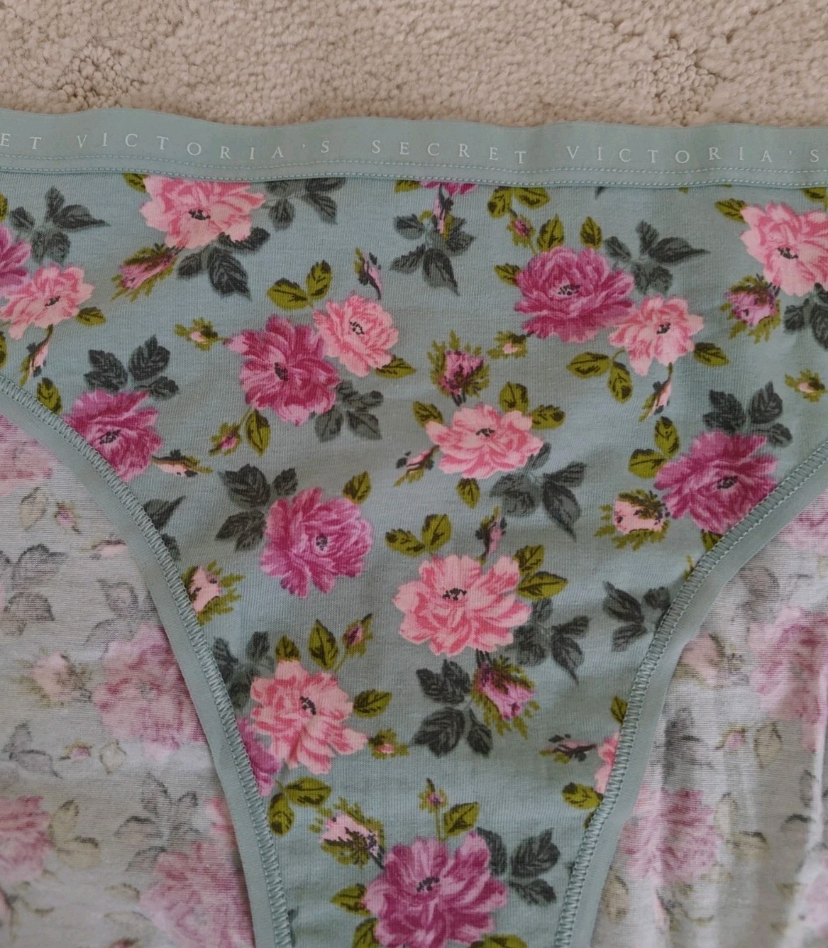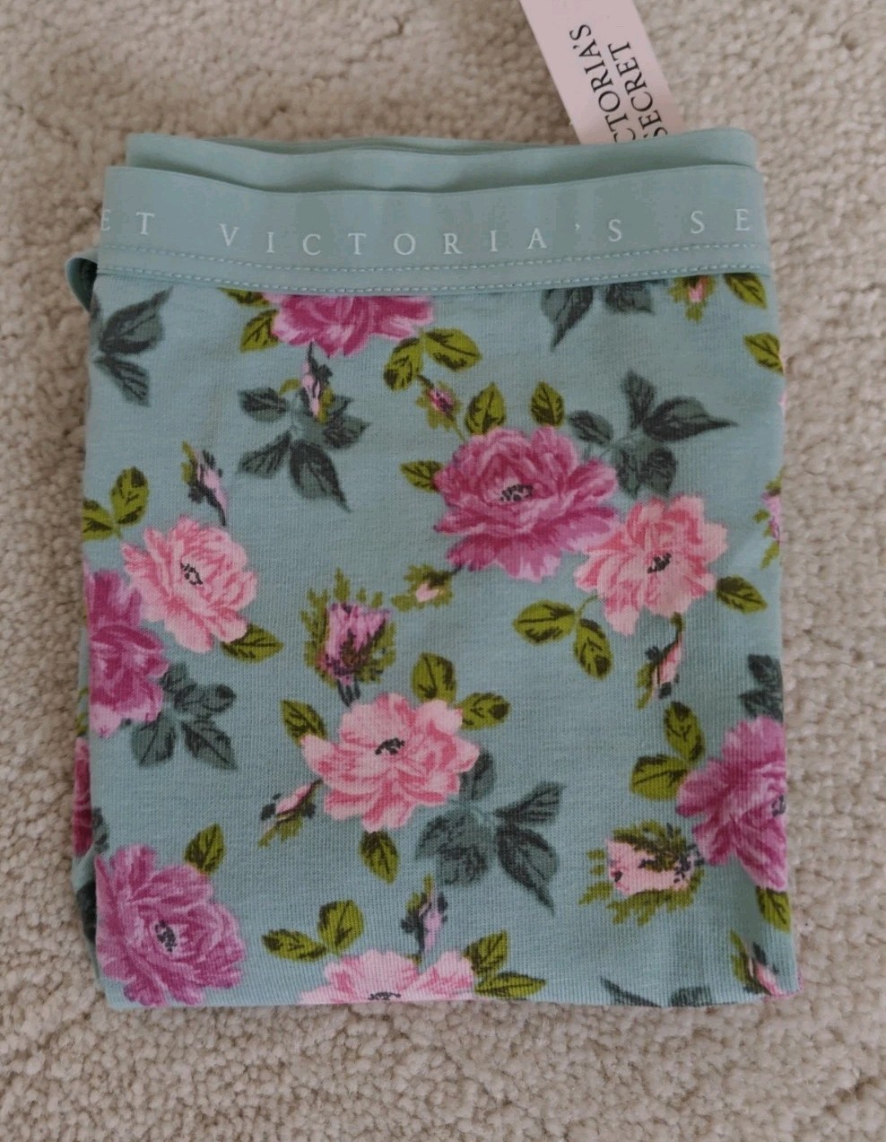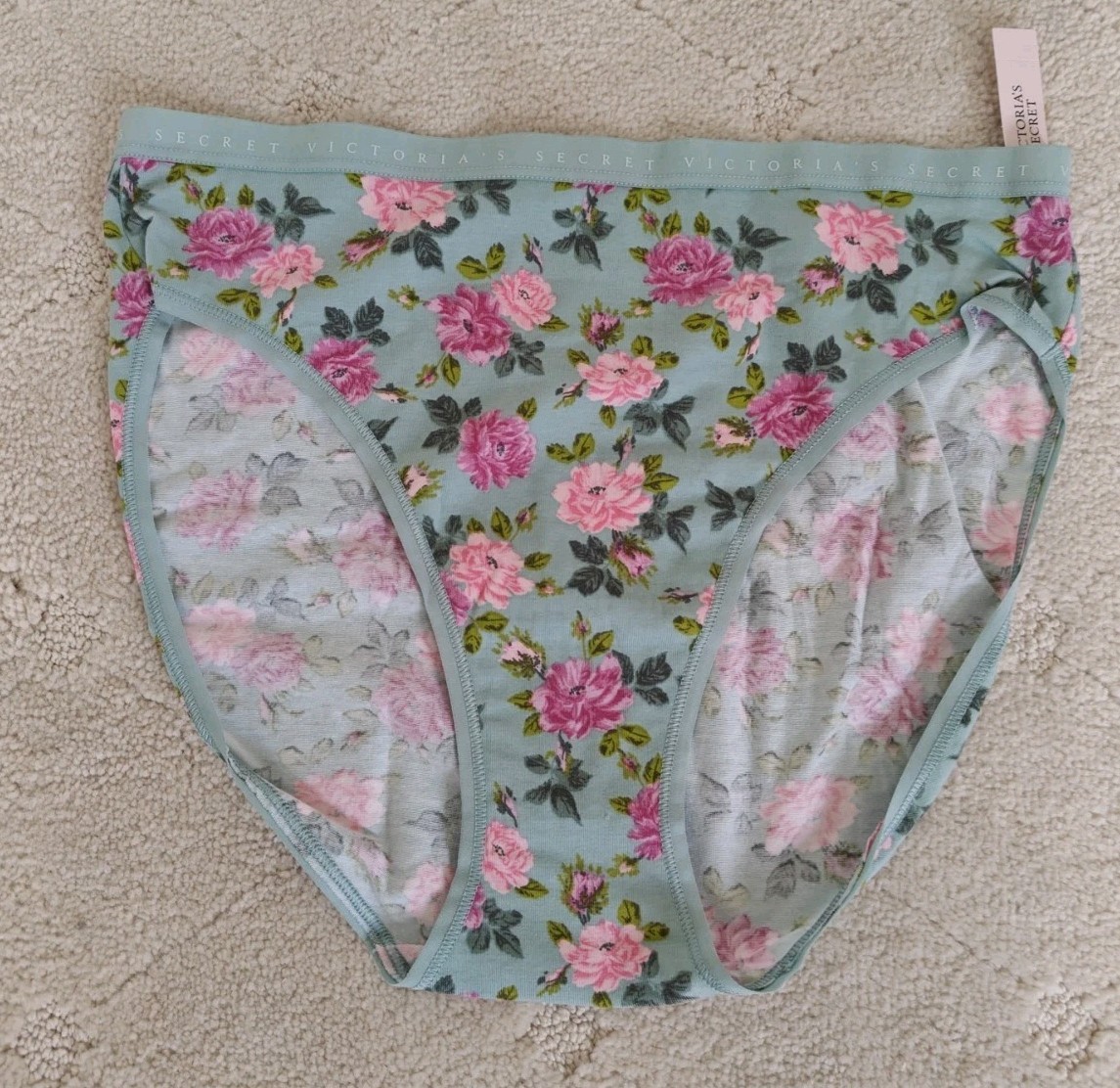 New VS Victorias Secret Cotton High Cut Leg Brief Panty Aqua Pink Roses Floral M