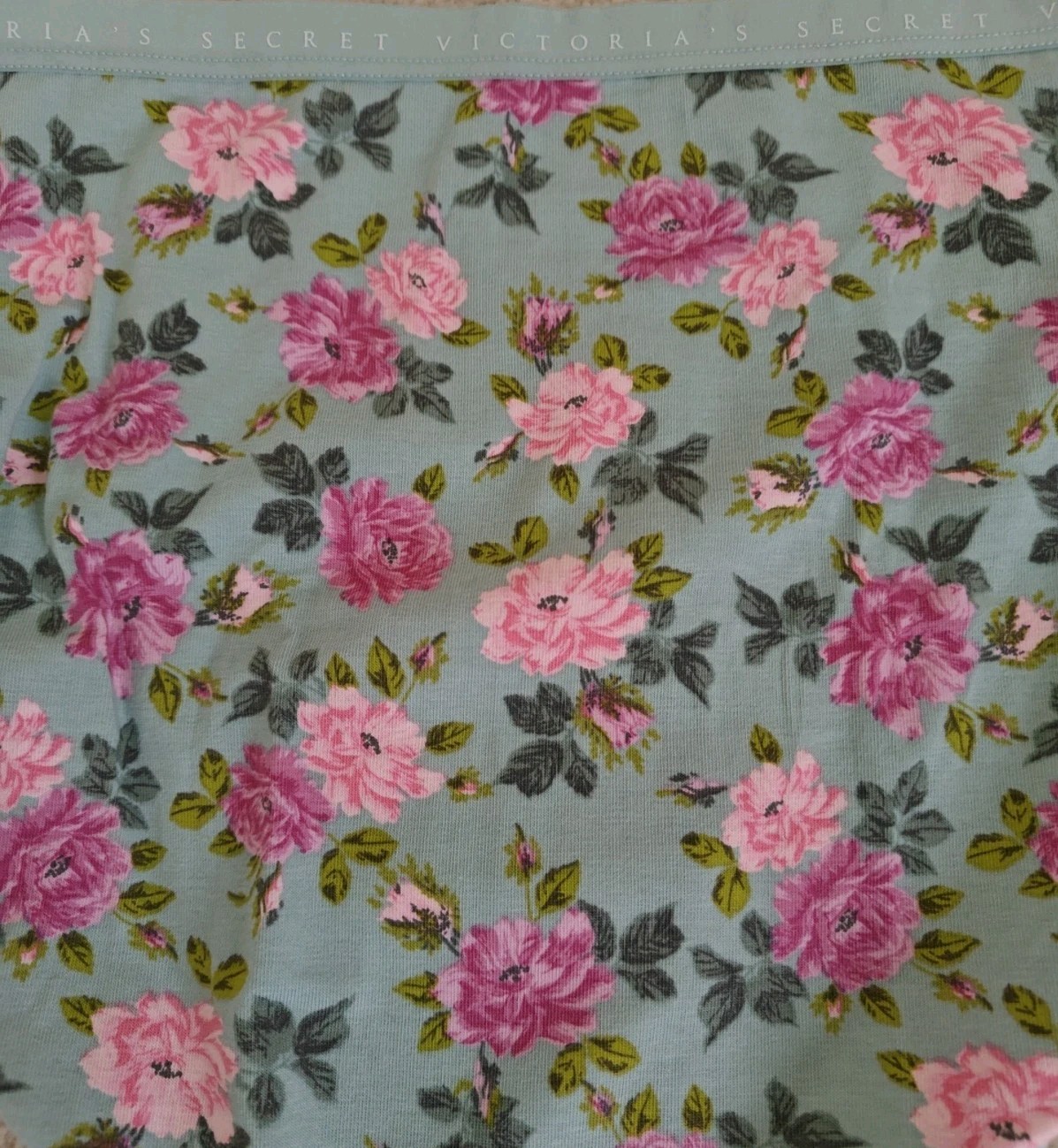 как выглядит New VS Victorias Secret Cotton High Cut Leg Brief Panty Aqua Pink Roses Floral M фото