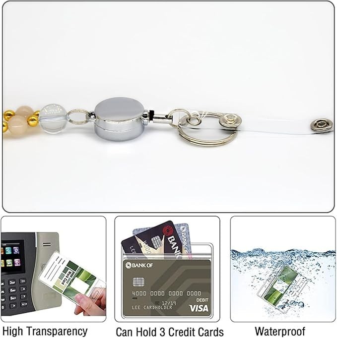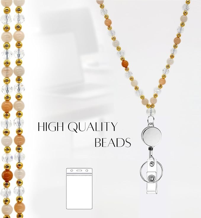 Retractable Lanyards for ID Badges and Keys, Durable Natural Stone Beaded Lanyar