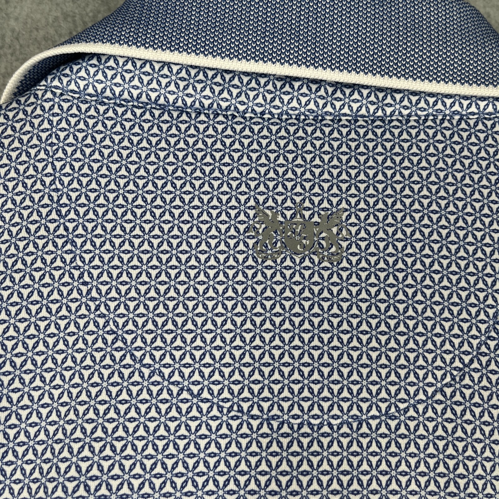 Hickey Freeman Polo Shirt XL Blue Geometric Performance Stretch Casual Mens