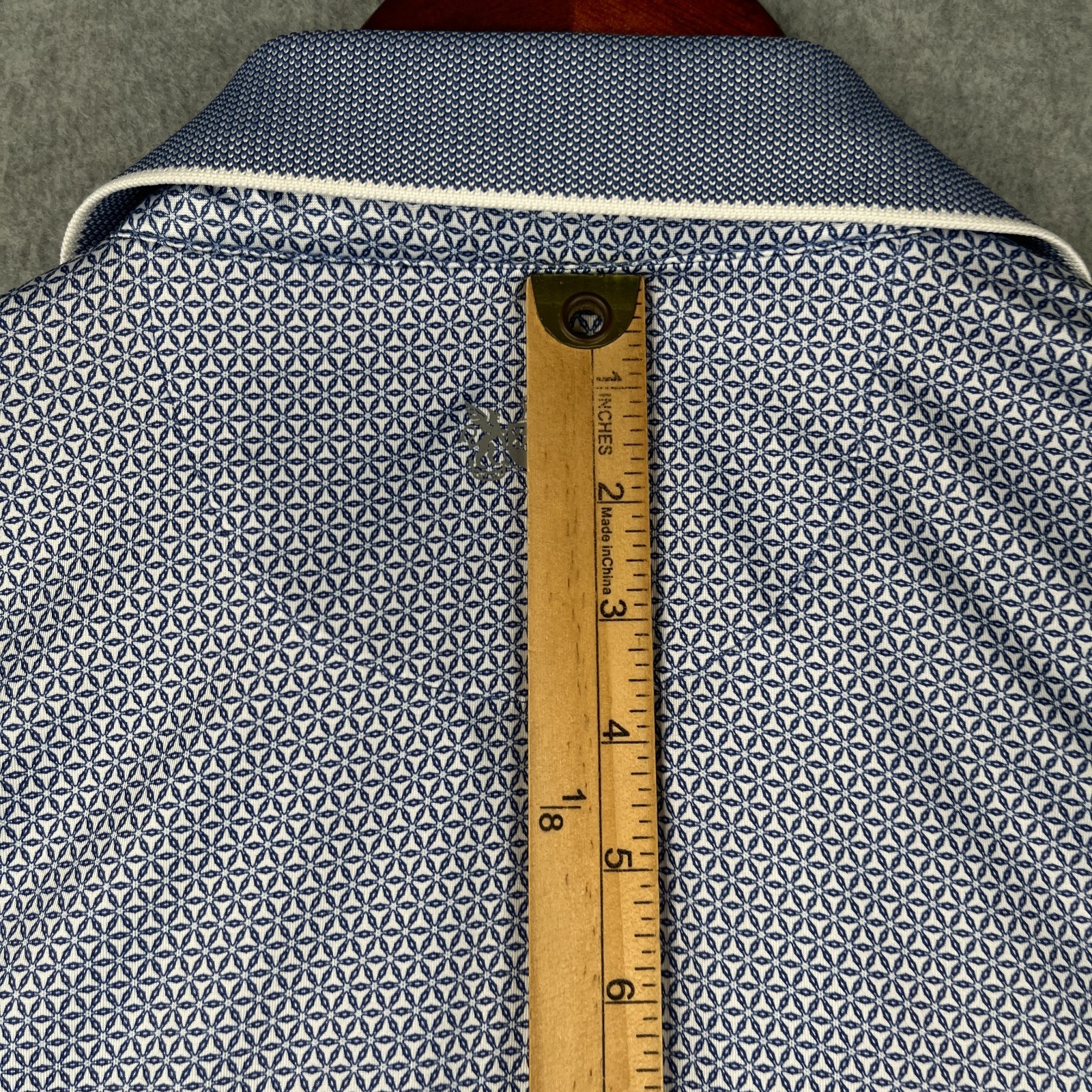 как выглядит Hickey Freeman Polo Shirt XL Blue Geometric Performance Stretch Casual Mens фото