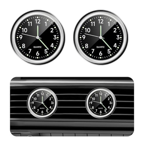 2 PCS Mini Car Clock, Round Shape Luminous Vehicle Dashboard Clock, Black