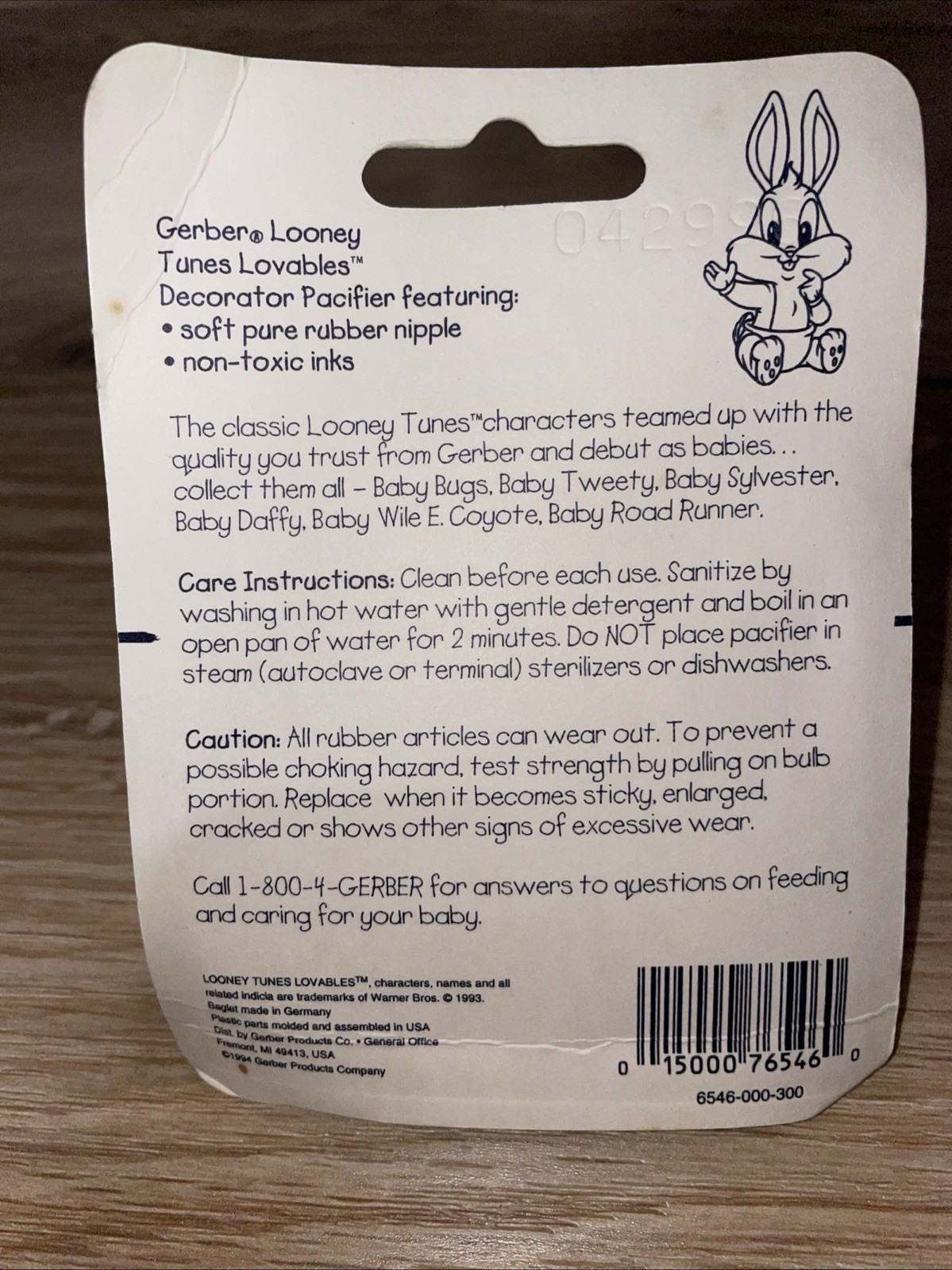 как выглядит Vintage 1993-94 Gerber Looney Tunes Decorator Pacifier Baby Road Runner NOS NEW фото