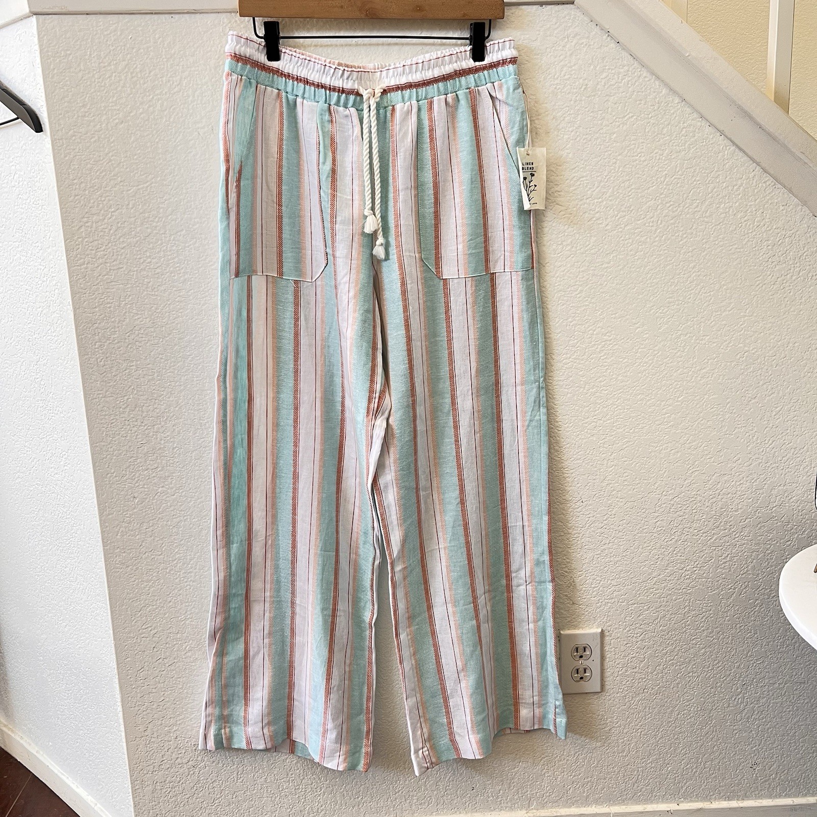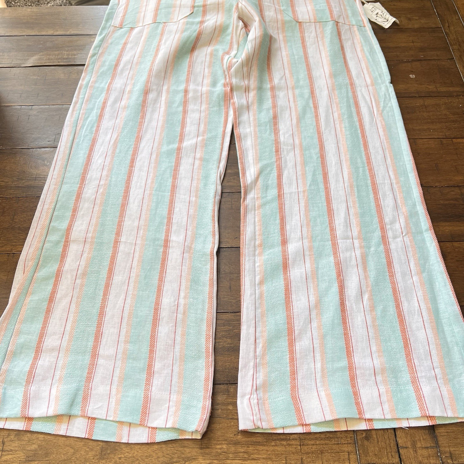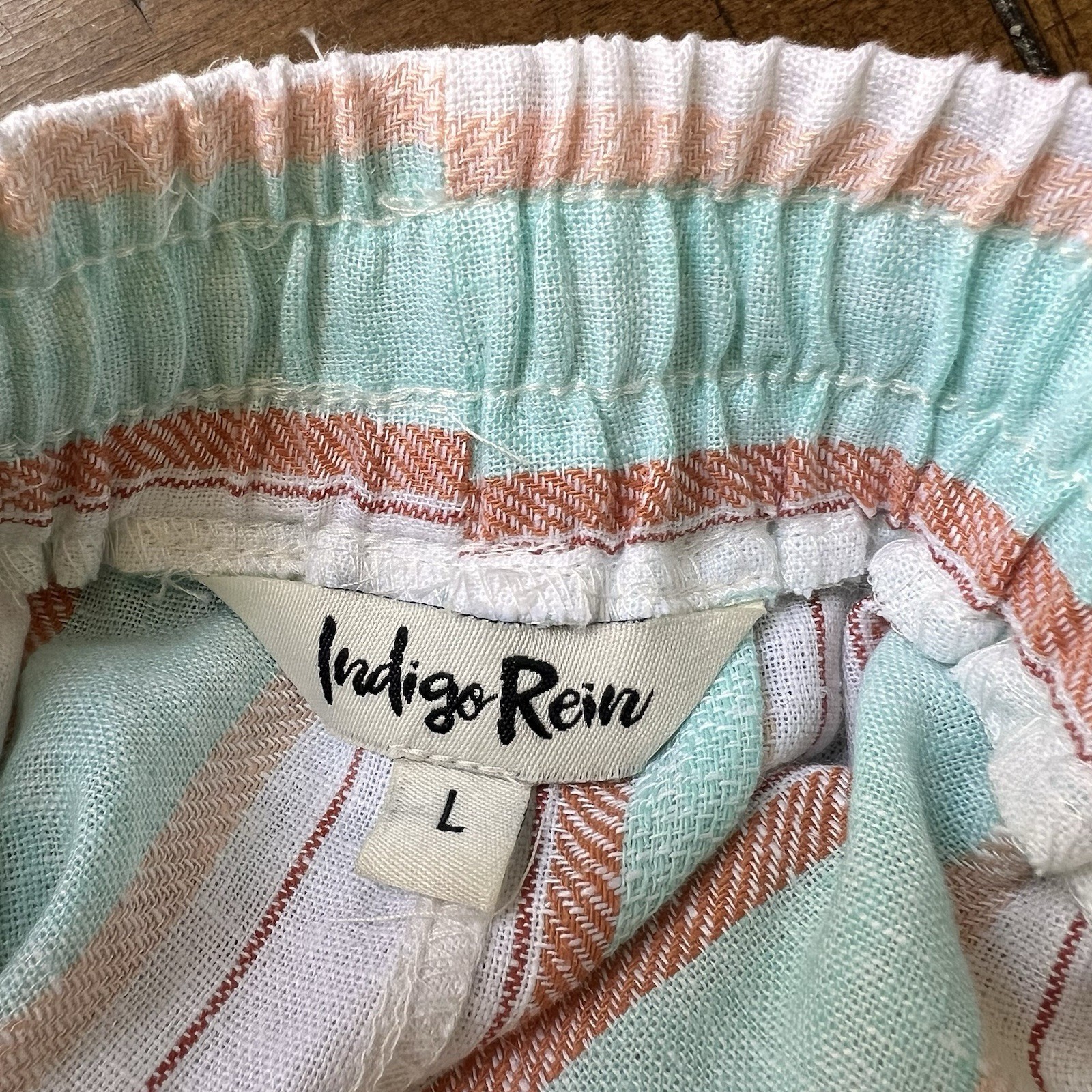 как выглядит Indigo Rein Linen Blend Pull On Wide Leg Pants Striped Size L фото
