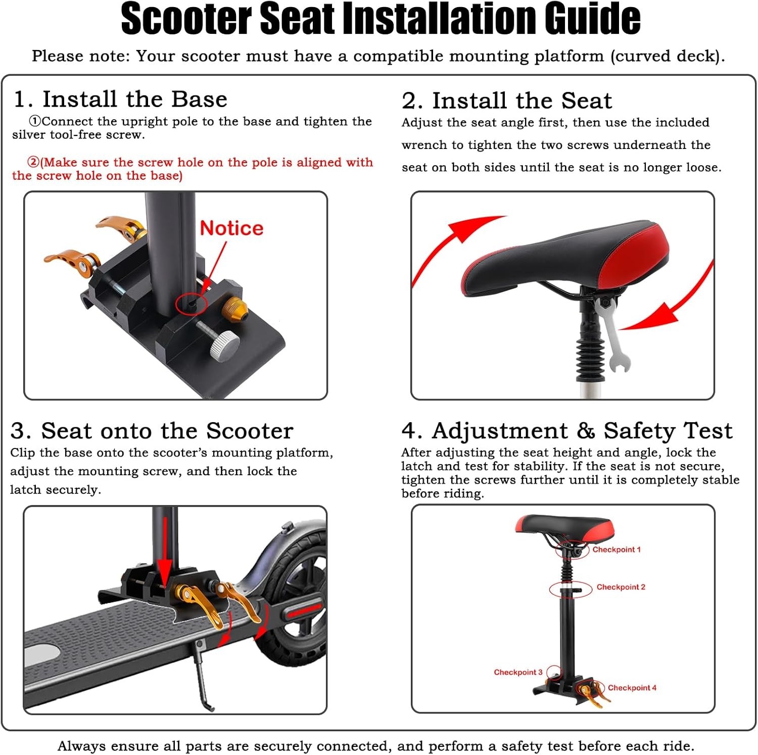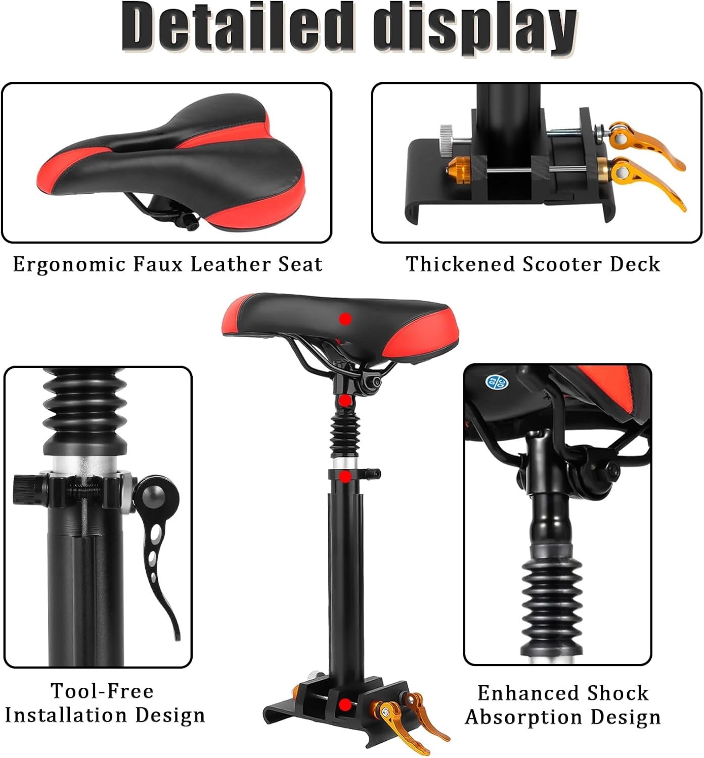 Adjustable Electric Scooter Seat for Adults Fits 5.5-6.2 Wide Curved-Edge Sc