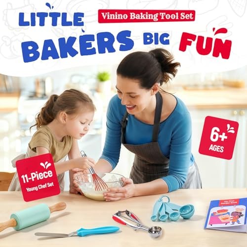11-Piece Kids Baking Cooking Set Real Baking Utensils with Cookbooks for