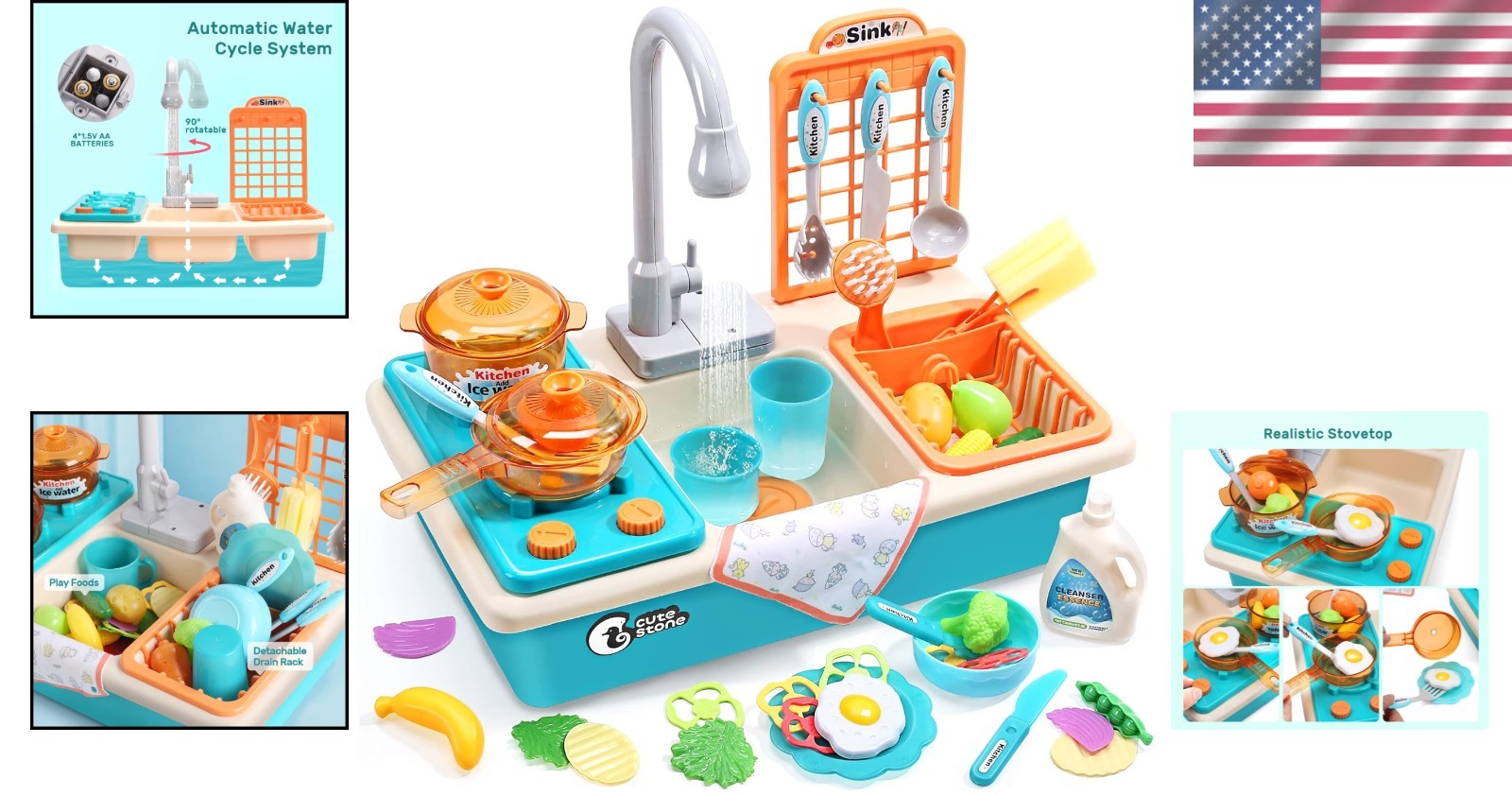 как выглядит Deluxe Play Kitchen Sink Set with Faucet Color-Changing Dishes for Toddlers фото