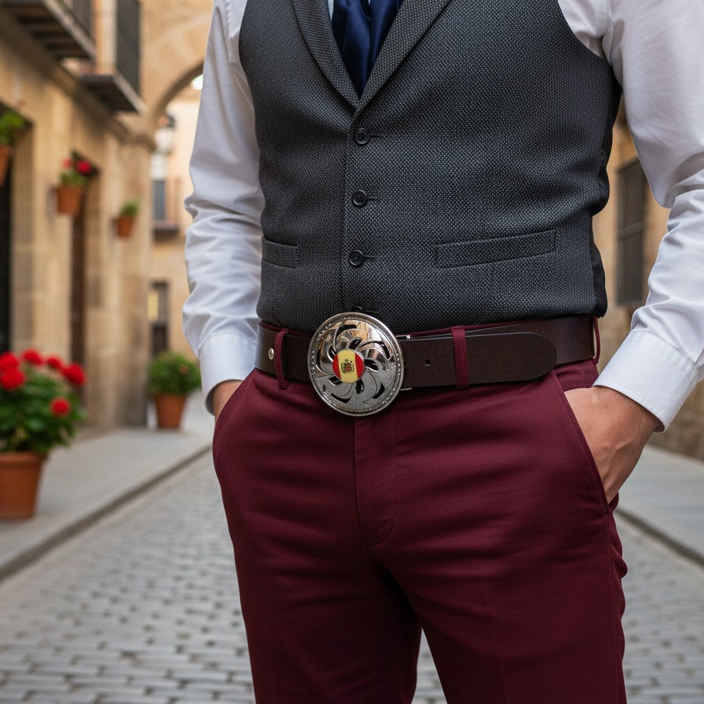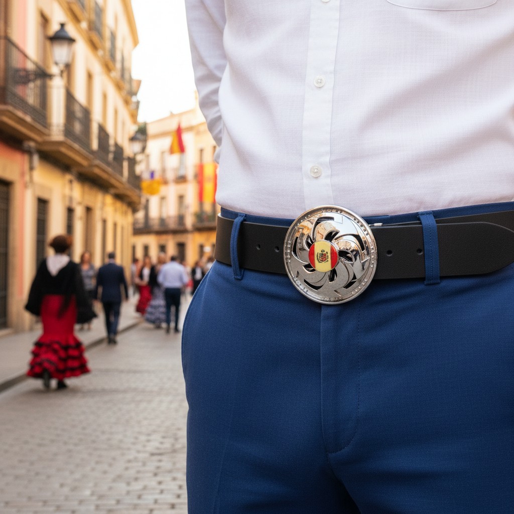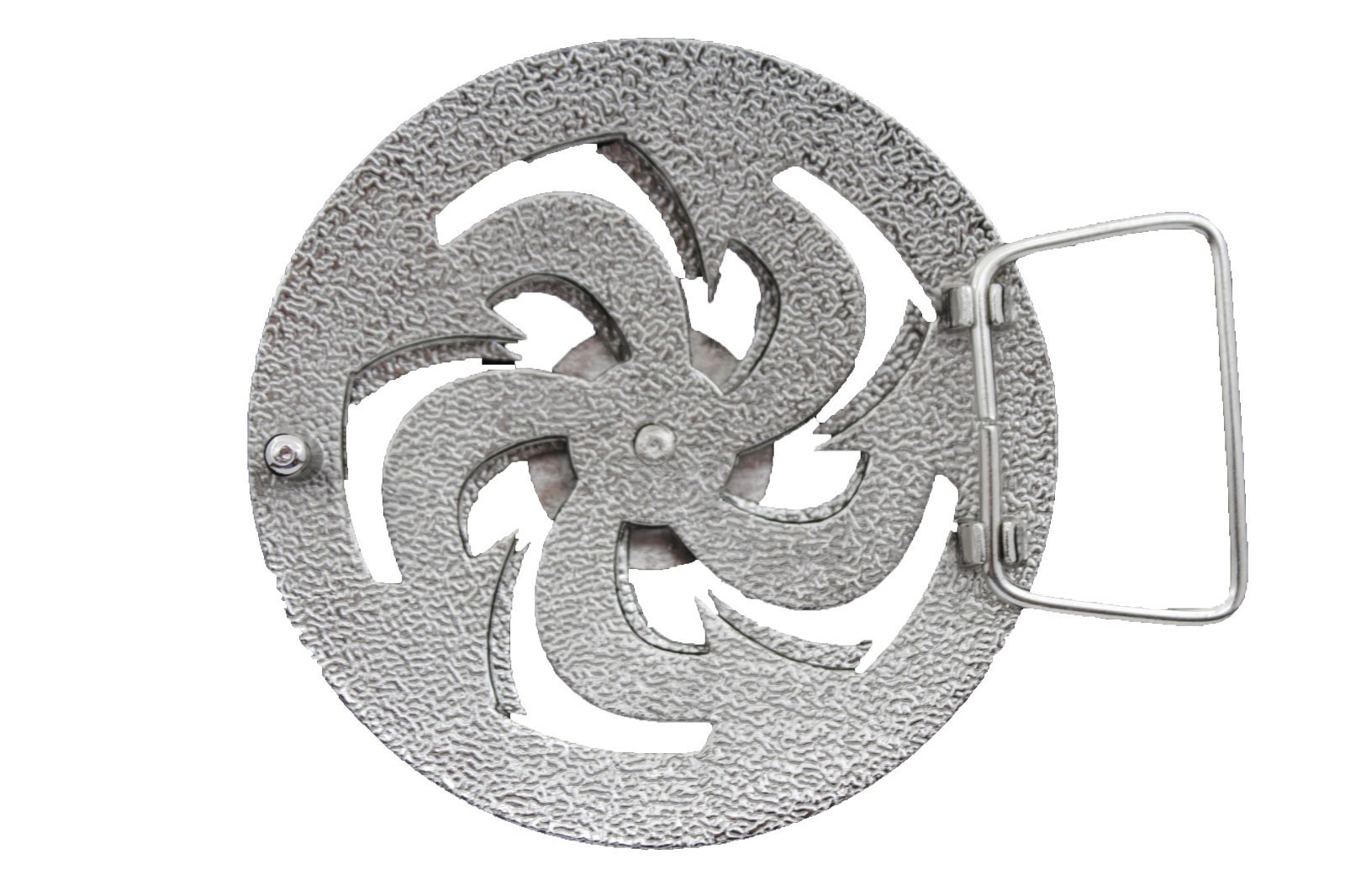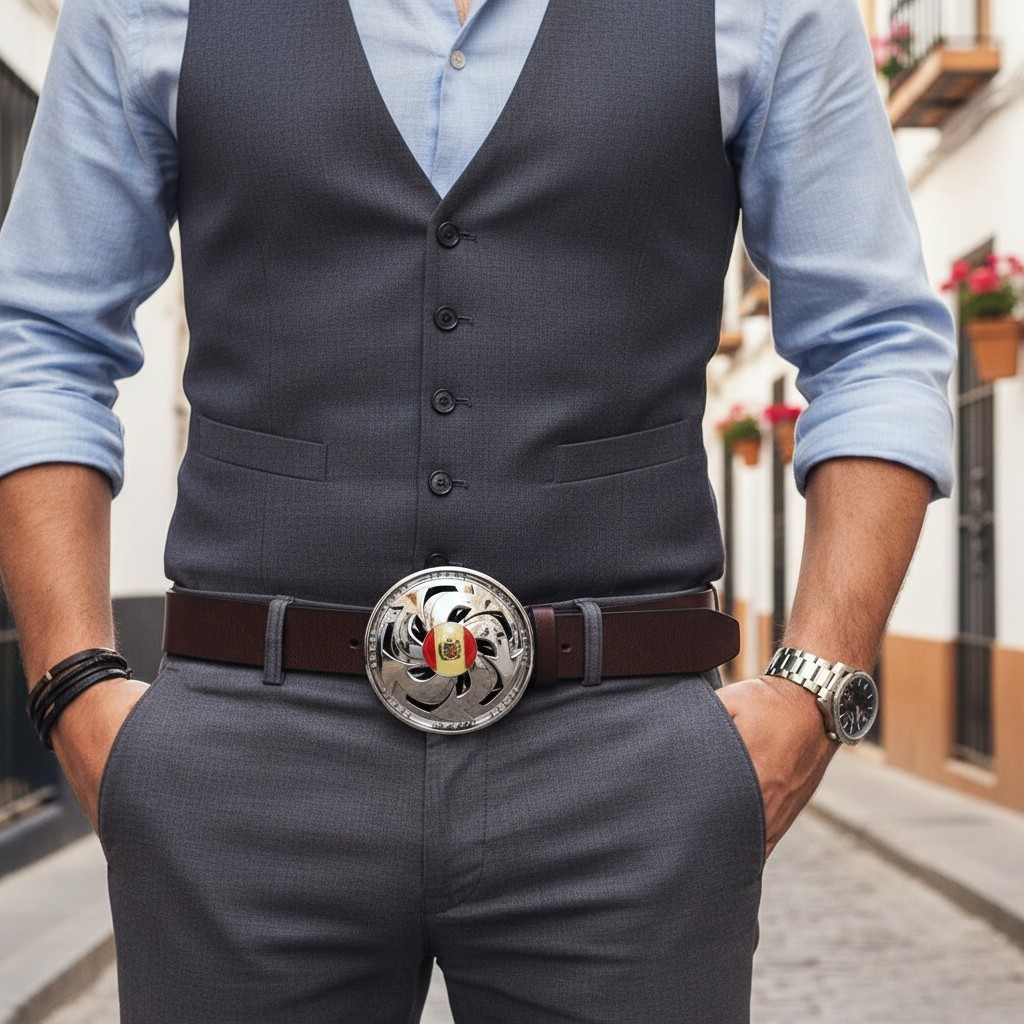 как выглядит Men Women Silver Metal Belt Buckle Round Shape Spinning Spain Flag фото