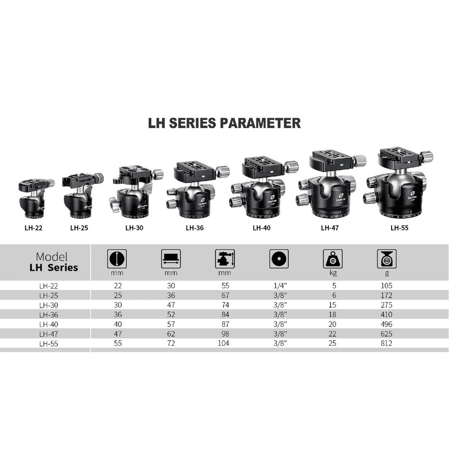 Leofoto LH-55 Series Low Profile Ball Head QR Plate, Arca, Camo, LH-55-CAMO