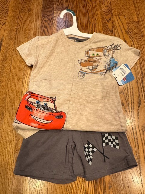 Disney Pixar Cars Short Outfit Set Lightning McQueen Mater Boys 4T New