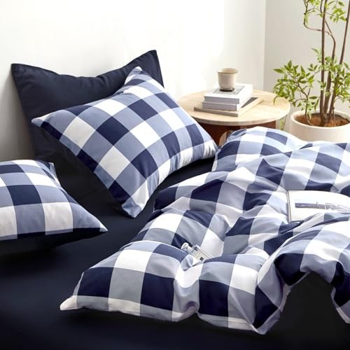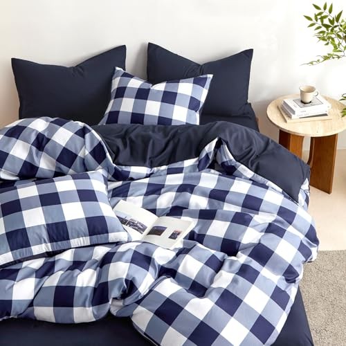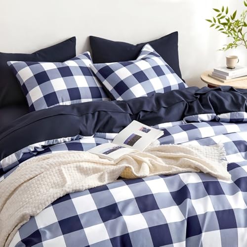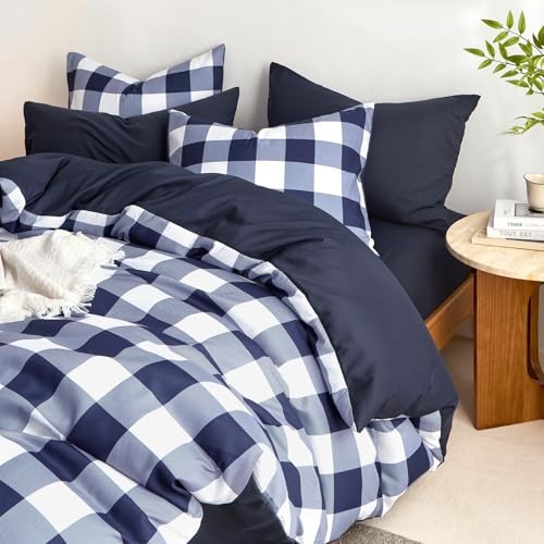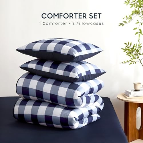 - Gingham Comforter Set, Plaid Buffalo Check Twin/Twin XL Navy Blue White