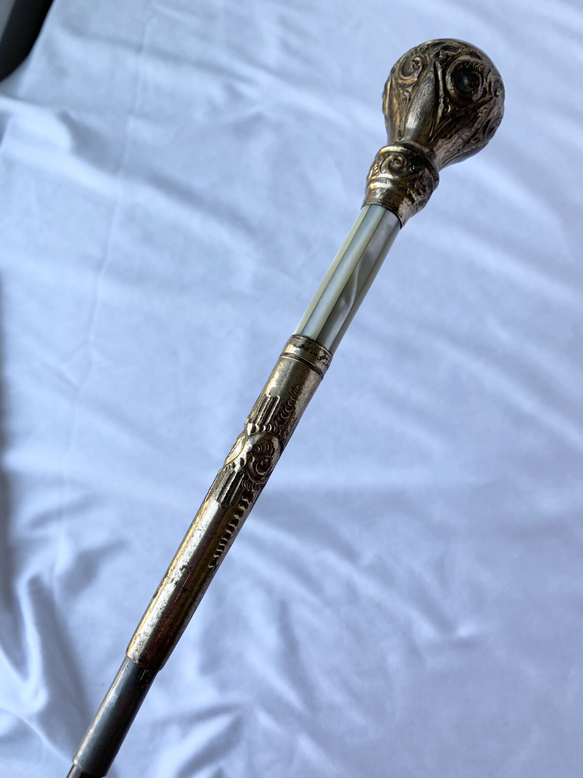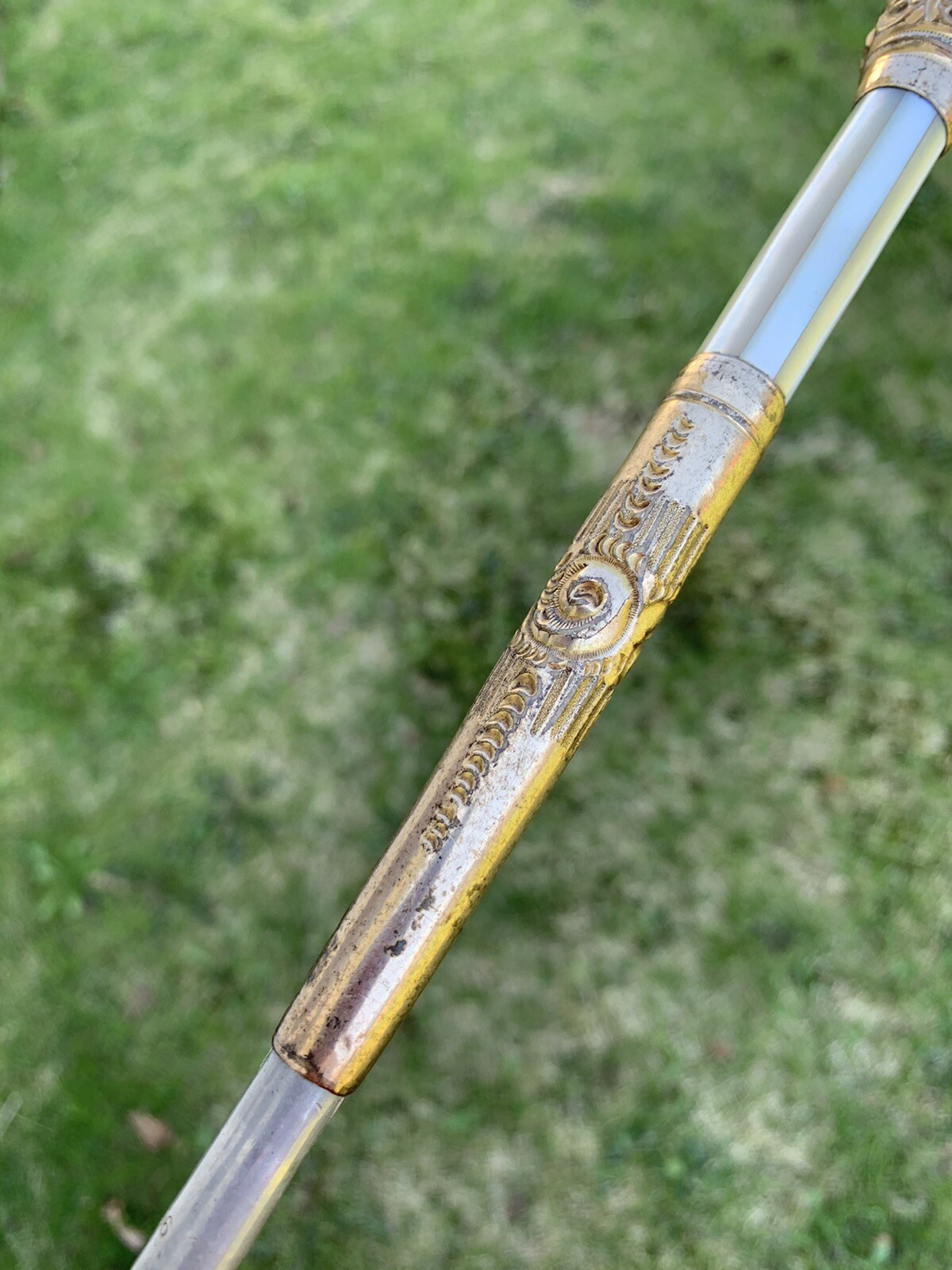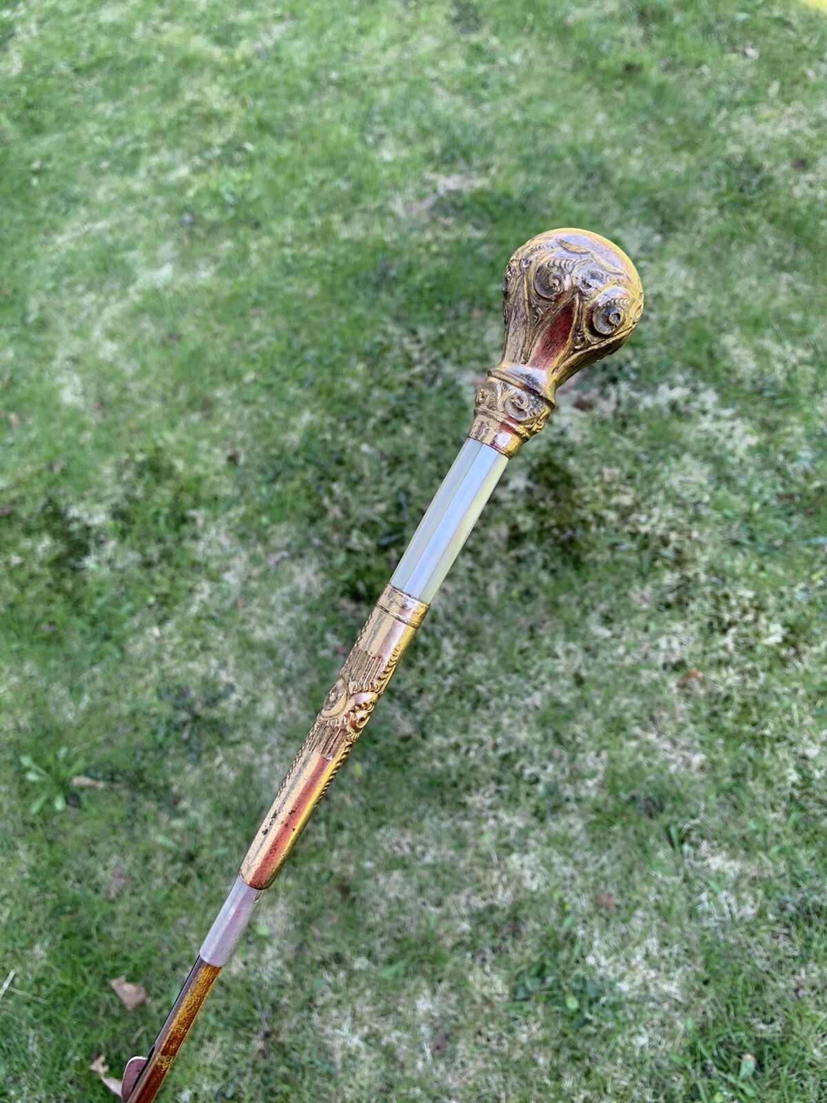 Antique Victorian Ornate Gold Filled Mother of Pearl Parasol / Umbrella Handle