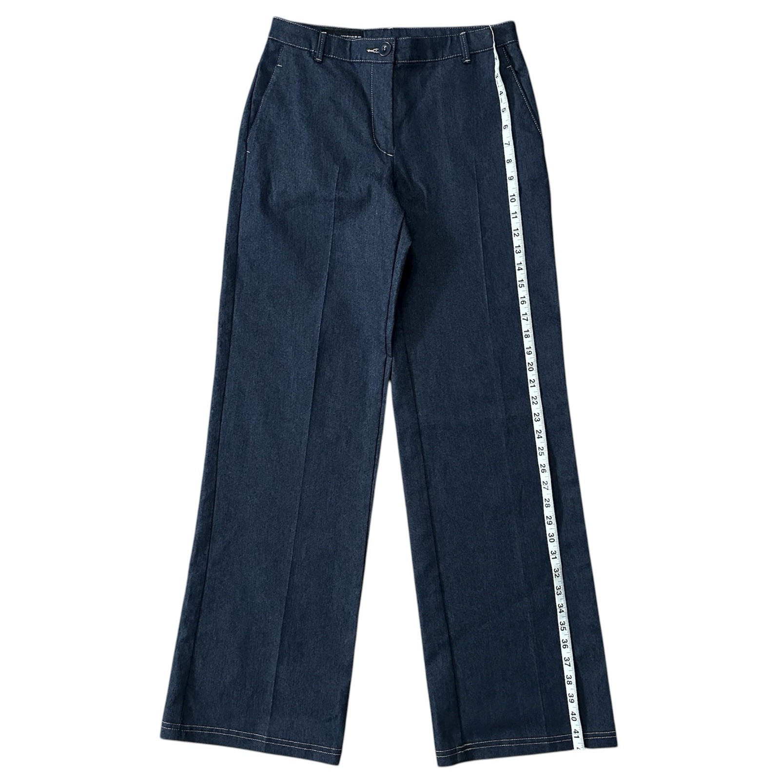 как выглядит Zara High Rise Wide Leg Trouser Style Jeans Dark Wash Denim Size Small фото