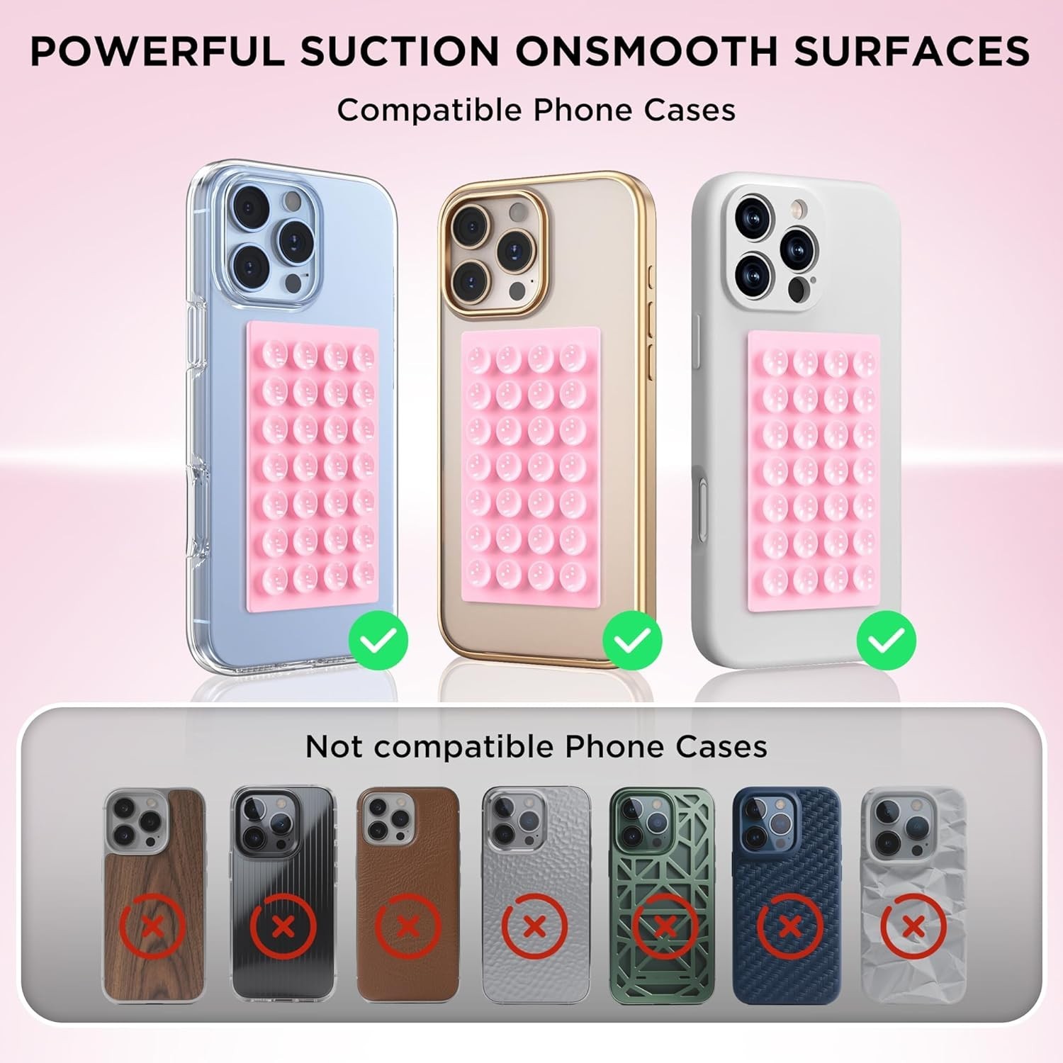2 Pack Silicone Suction Cup Phone Case Mount Double-Sided, Hands-Free Strong