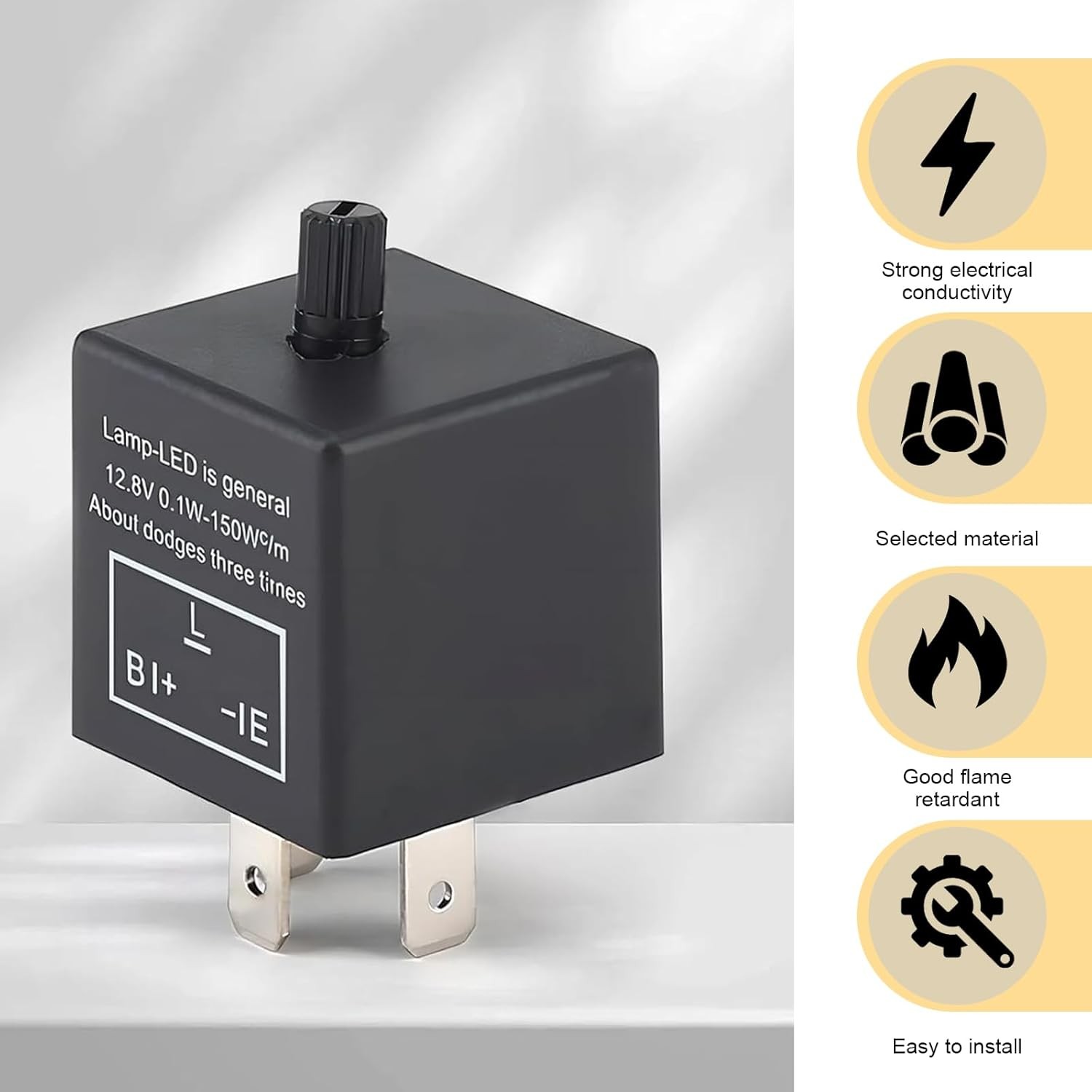 Flasher Relay, 12V 0.02A, Black, Plug-and-Play, Standard LED Turn Signal Rel