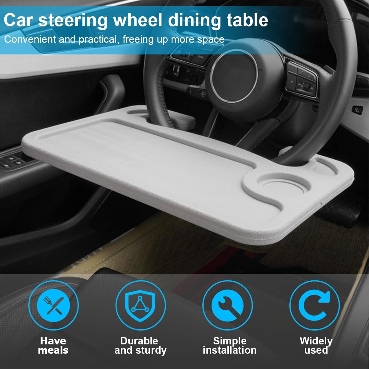 Car Steering Wheel Tray, 2 in 1 Auto Steering Wheel Desk for Eating Drinks L