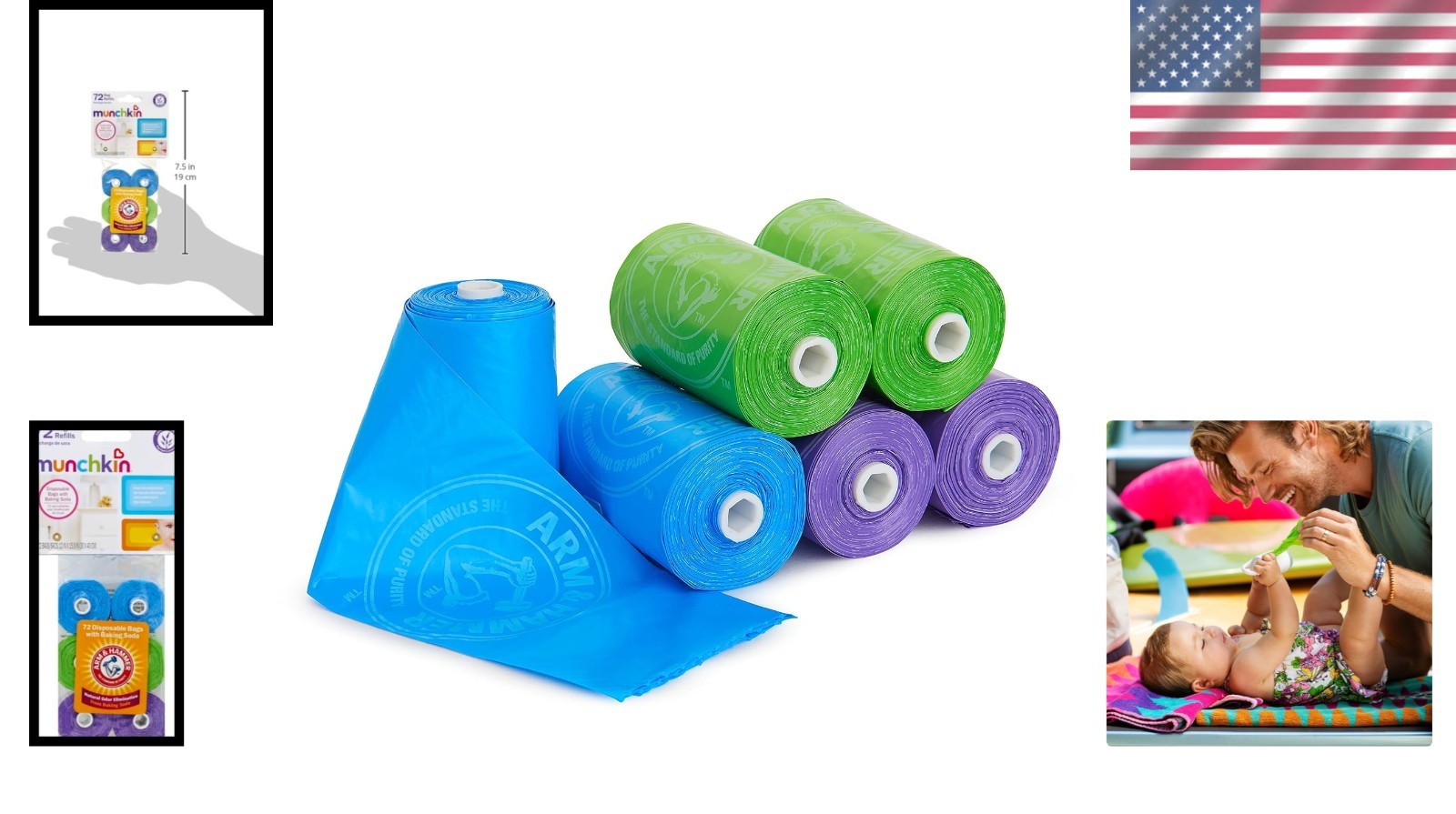 Arm and Hammer Diaper Bag Refills - 72 Scented Bags Infused with Baking Soda