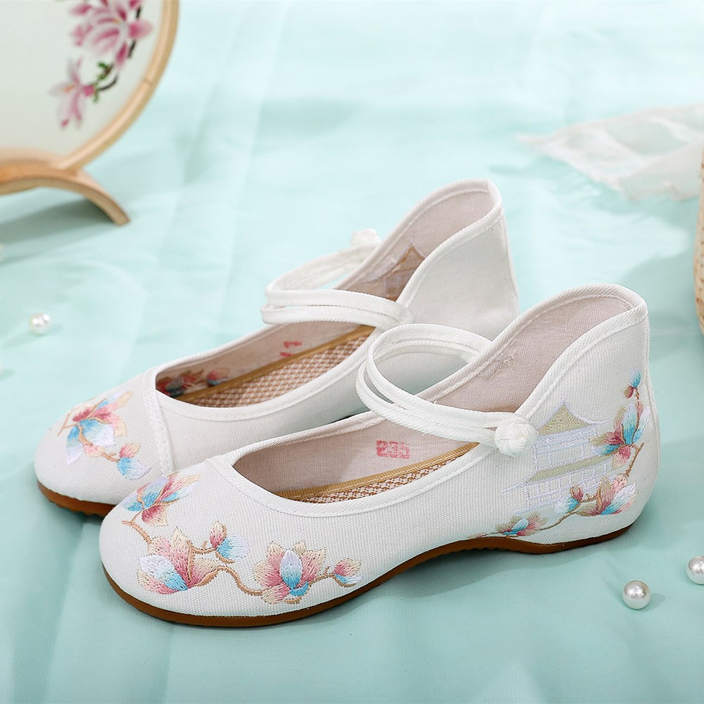Traditional Chinese Hanfu Embroidery Shoes Low Heel Casual Fashion Red White