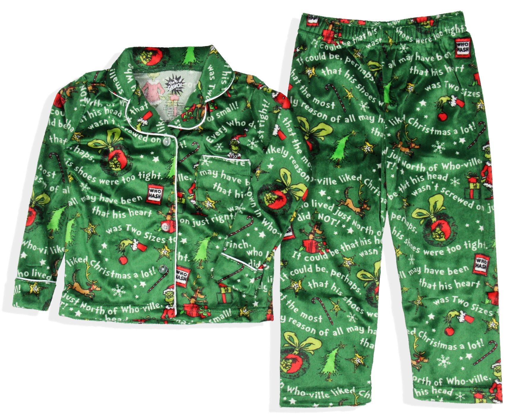 Dr. Seuss GRINCH Christmas Mens' Tossed Print Collar Sleep Pajama Set