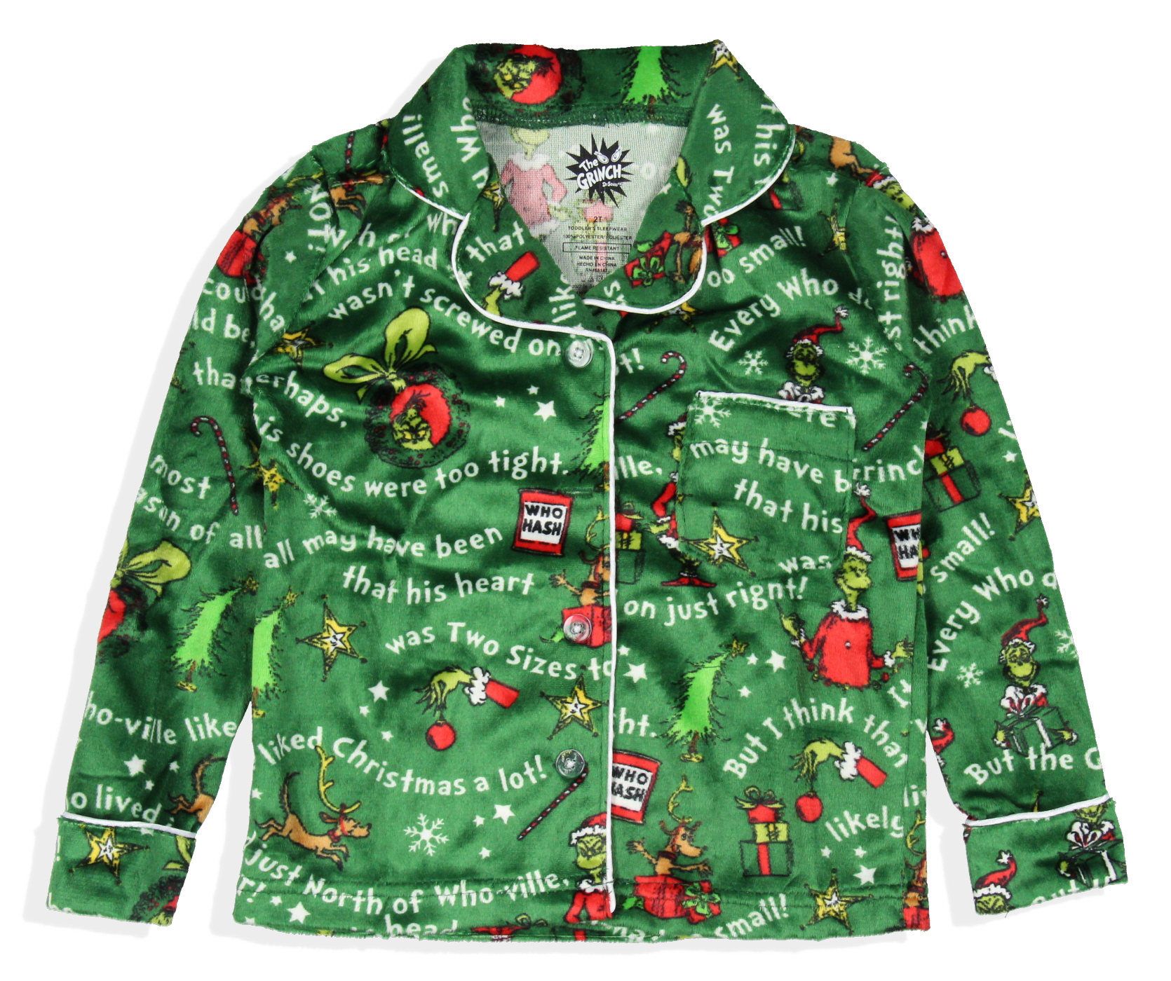 как выглядит Dr. Seuss GRINCH Christmas Mens Tossed Print Collar Sleep Pajama Set фото