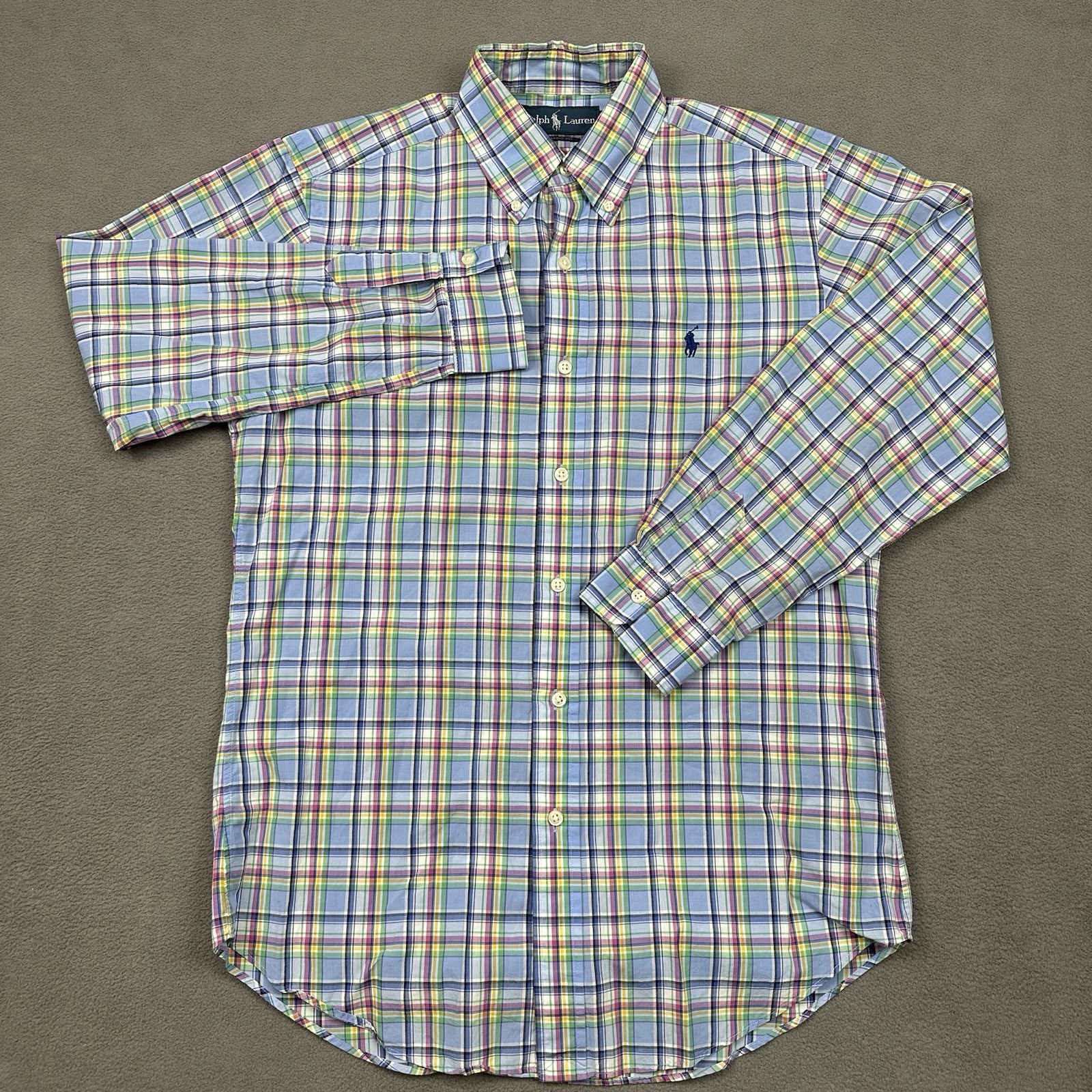 как выглядит Ralph Lauren Long Sleeve Button Down Shirt Mens S Pink Blue Plaid Classic Fit фото